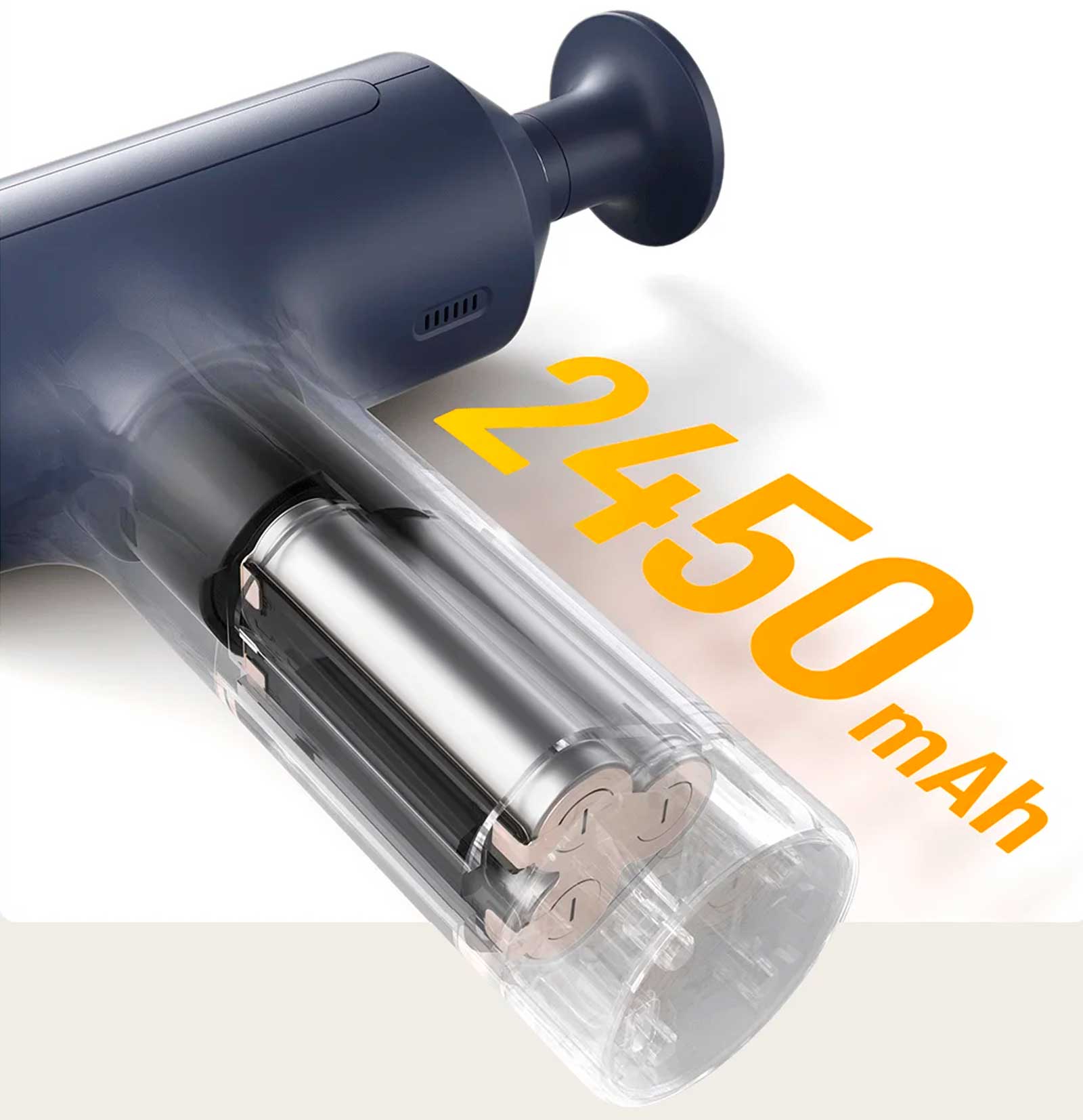Массажёр оснащён мотором с усилием до 25 кг и глубиной воздействия до 10 мм. Он эффективно прорабатывает мышцы и ускоряет восстановление. В наличии два режима: фиксированный и переменный, каждый с тремя уровнями интенсивности.