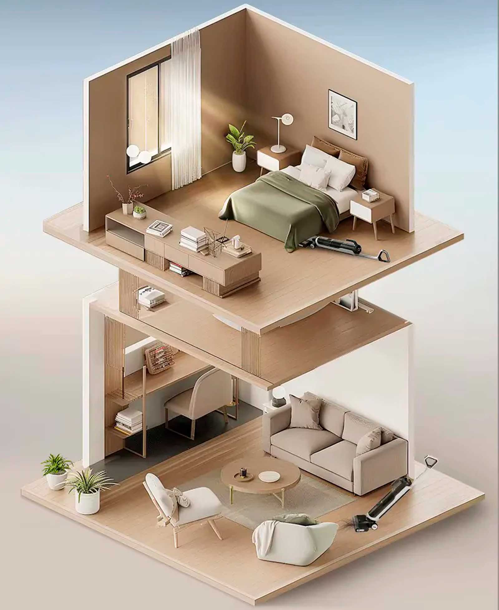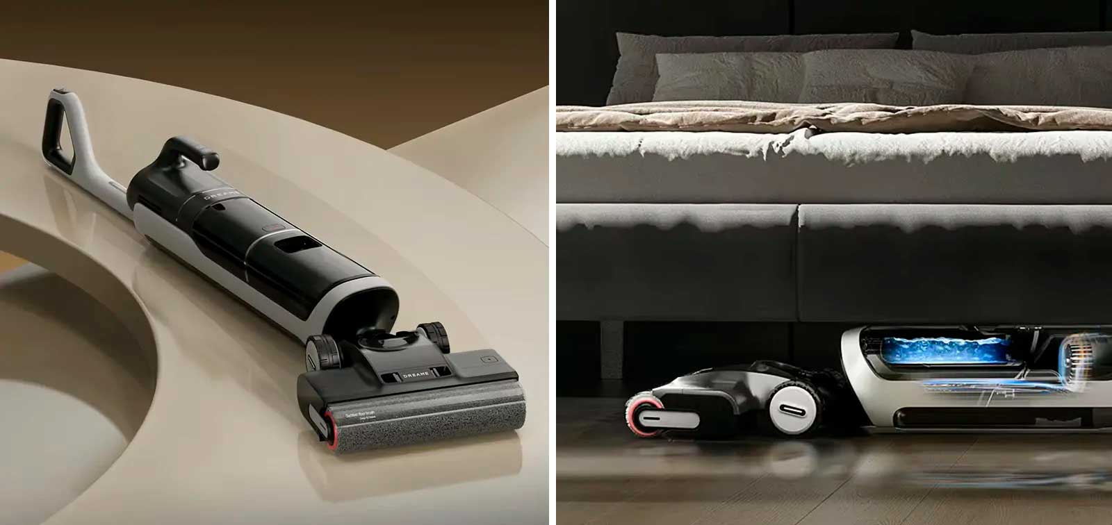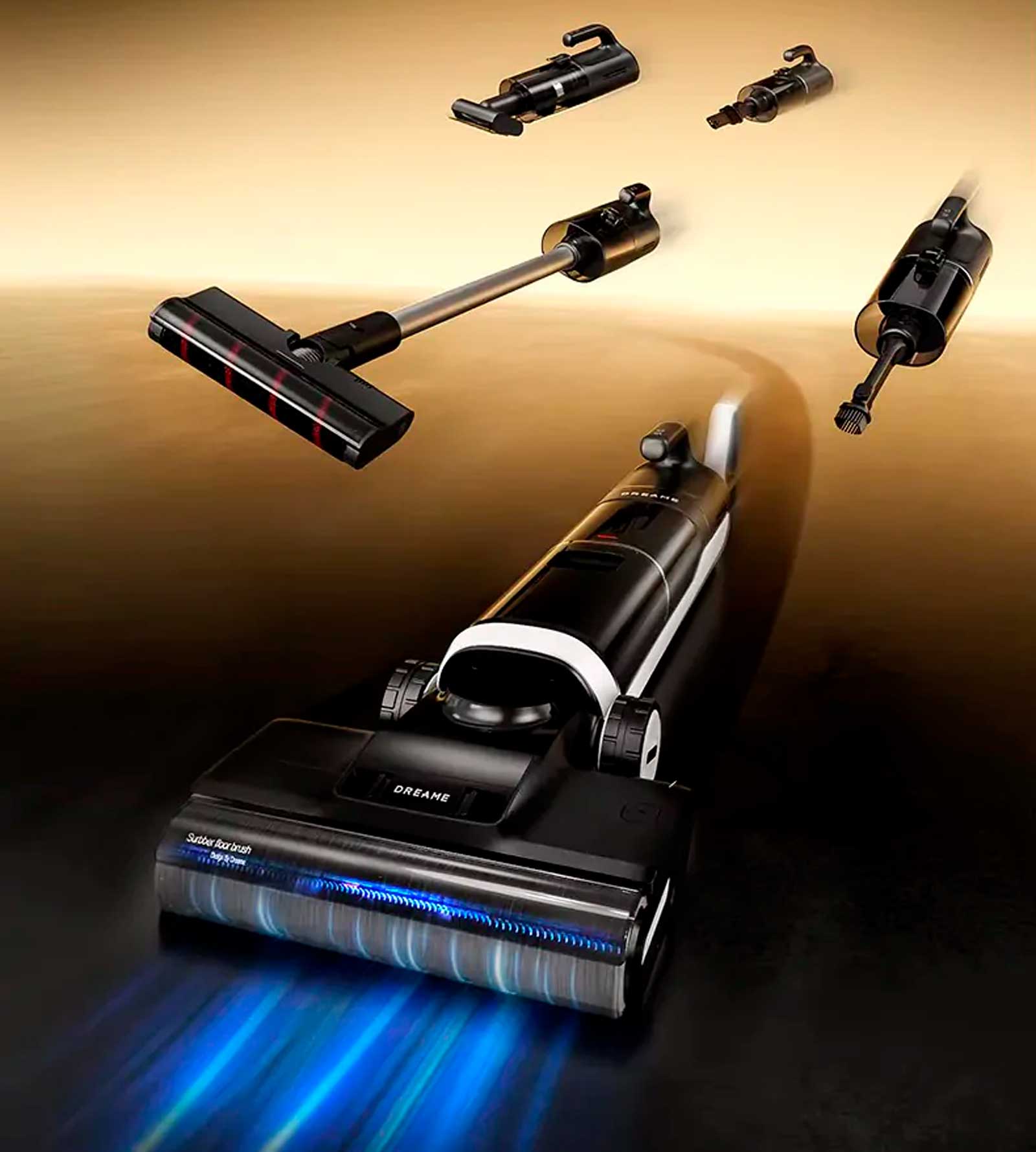 Пылесос оснащён мотором на 4400 об/мин и создаёт мощность всасывания до 18,000 Па. Компактный и тонкий корпус (14 см) позволяет убирать даже под мебелью. Система AI-сервоприводов облегчает управление, снижая физическую нагрузку.