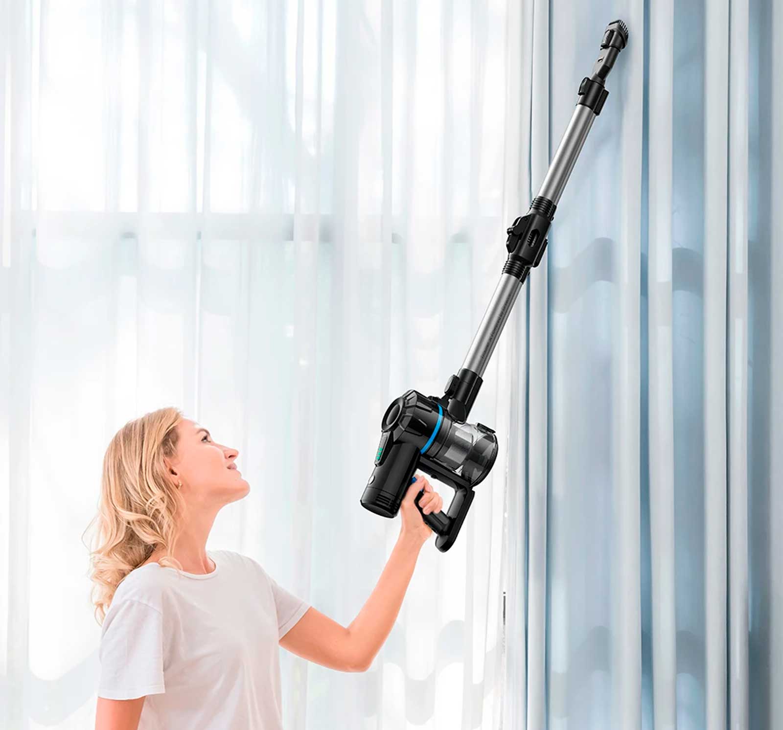 Убирайте труднодоступные места еще проще со складной трубкой. Гибкая середина трубки сгибается и расширяется, поэтому вам не придется нагибаться, чтобы навести порядок в углу или под мебелью.