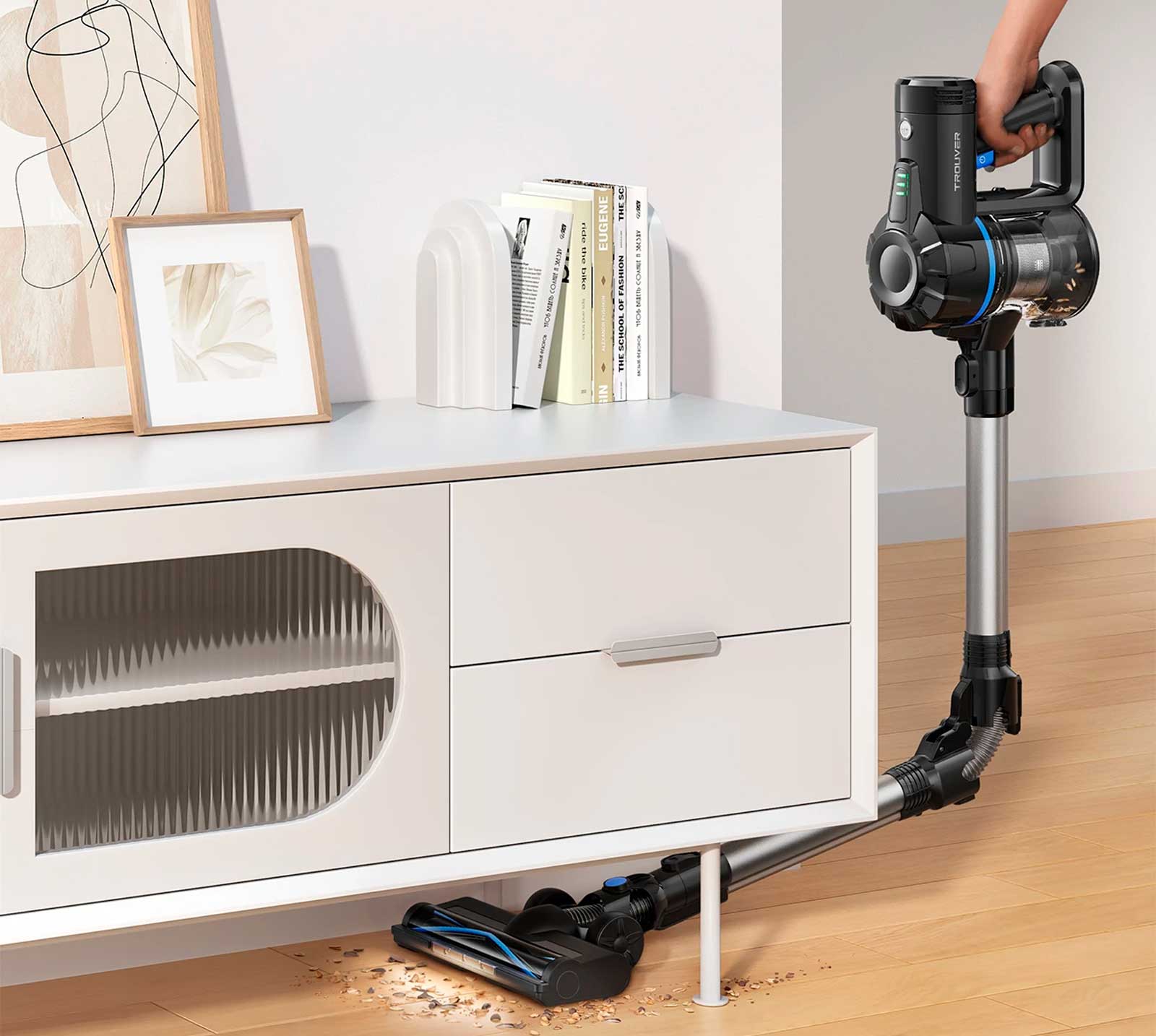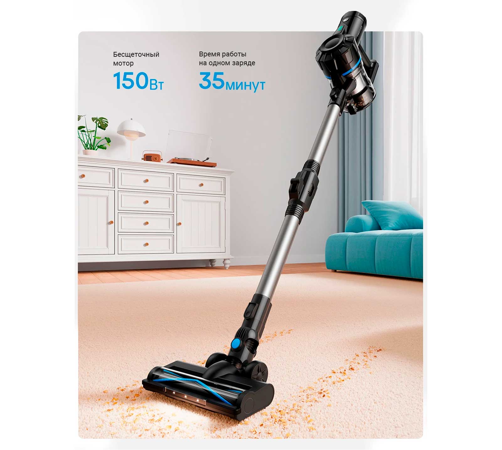 Dreame Trouver J10 оснащен бесщеточным мотором мощностью 150 Вт и обеспечивает до 35 минут уборки, тщательно всасывая грязь, пыль и мусор.