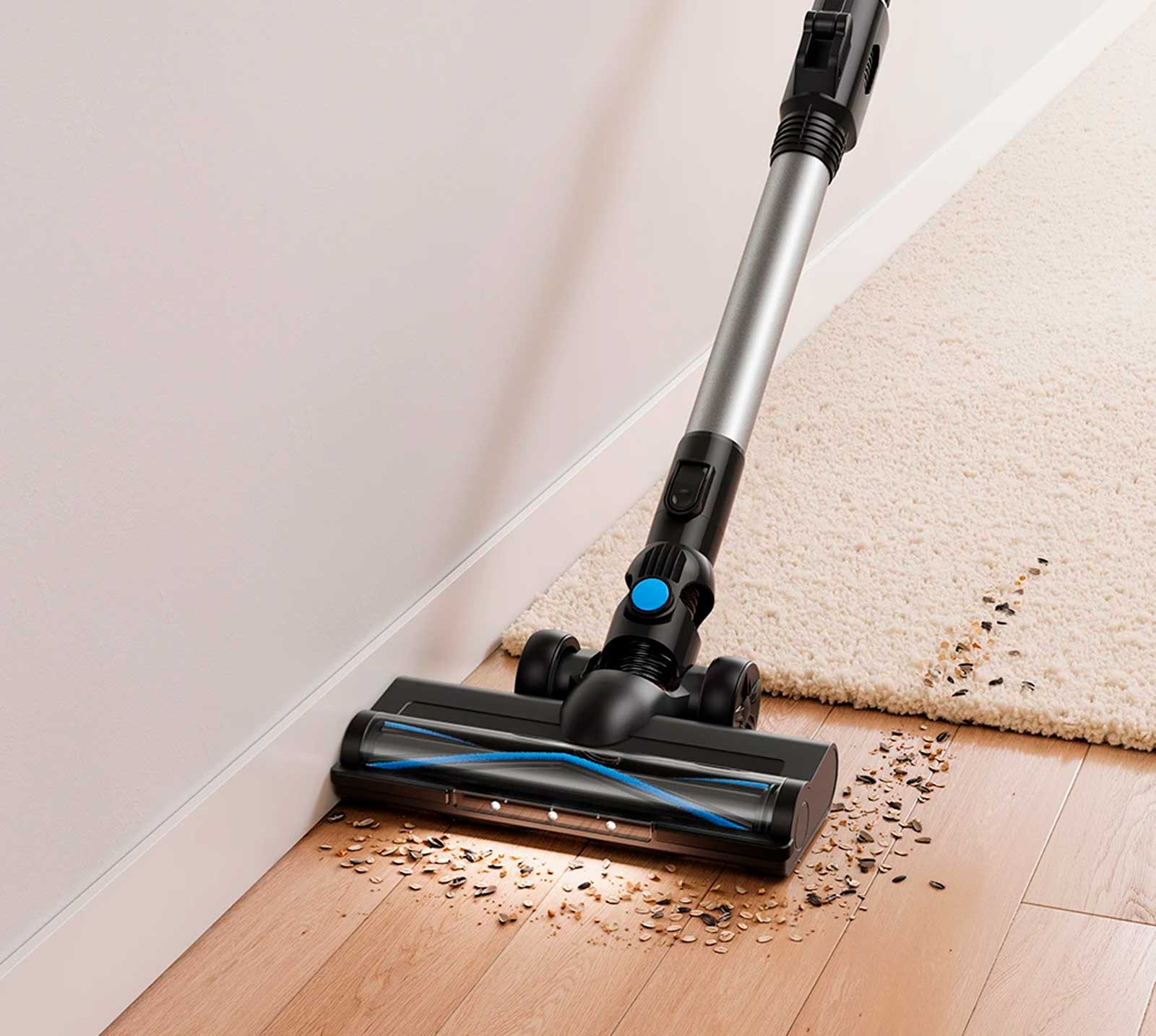 Благодаря универсальному дизайну щетка Multi-Surface с подсветкой эффективно чистит ковры и твердые напольные покрытия, а светодиодная подсветка помогает убирать в затемненных участках.