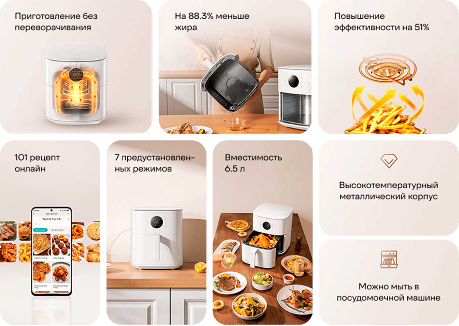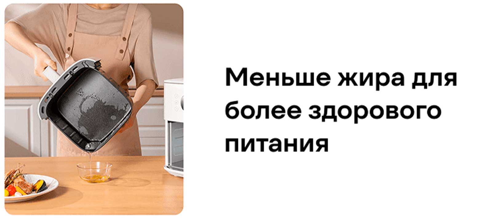 метод чрезвычайно эффективен для снижения содержания жира. Фактически, по сравнению с традиционным аэрогрилем, Xiaomi Air Fryer может снизить содержание жира до 88.3%, что делает ваши блюда значительно более здоровыми.