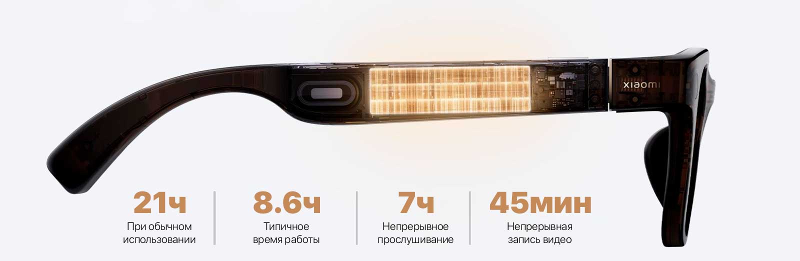 Аккумулятор Xiaomi AI Glasses обладает большой ёмкостью и длительным временем работы