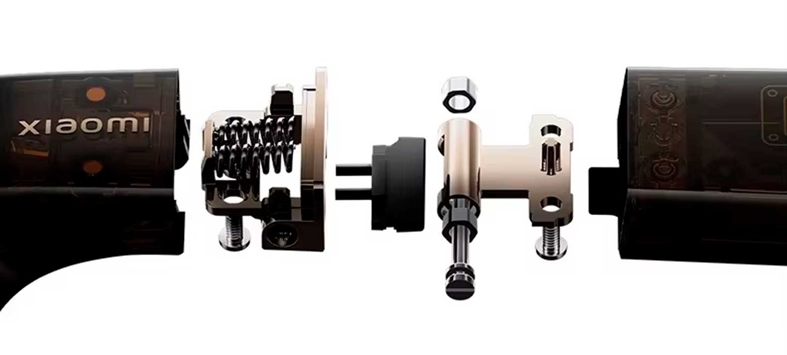 Титановый вращающийся вал авиационного класса. Он обладает лёгкой структурой и «памятью упругости». Даже после 18 000 циклов открытия и закрытия остаётся таким же прочным, как новый.