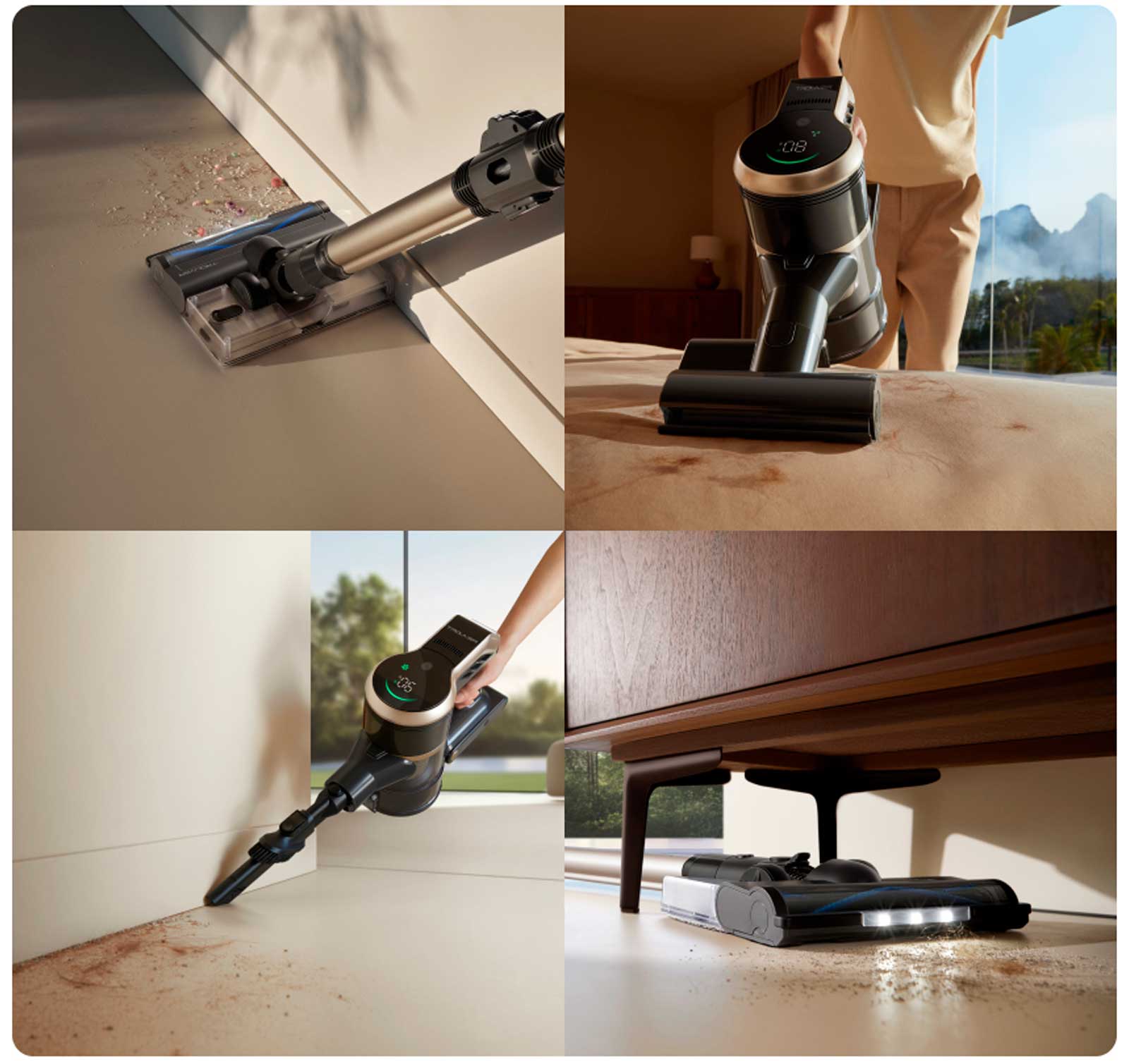 Расширьте возможности уборки с помощью специальных насадок: длинная щелевая насадка «2 в 1» позволяет добираться до тесных и узких углов, а электрическая мини-щетка обеспечивает быструю и эффективную очистку кроватей и диванов.