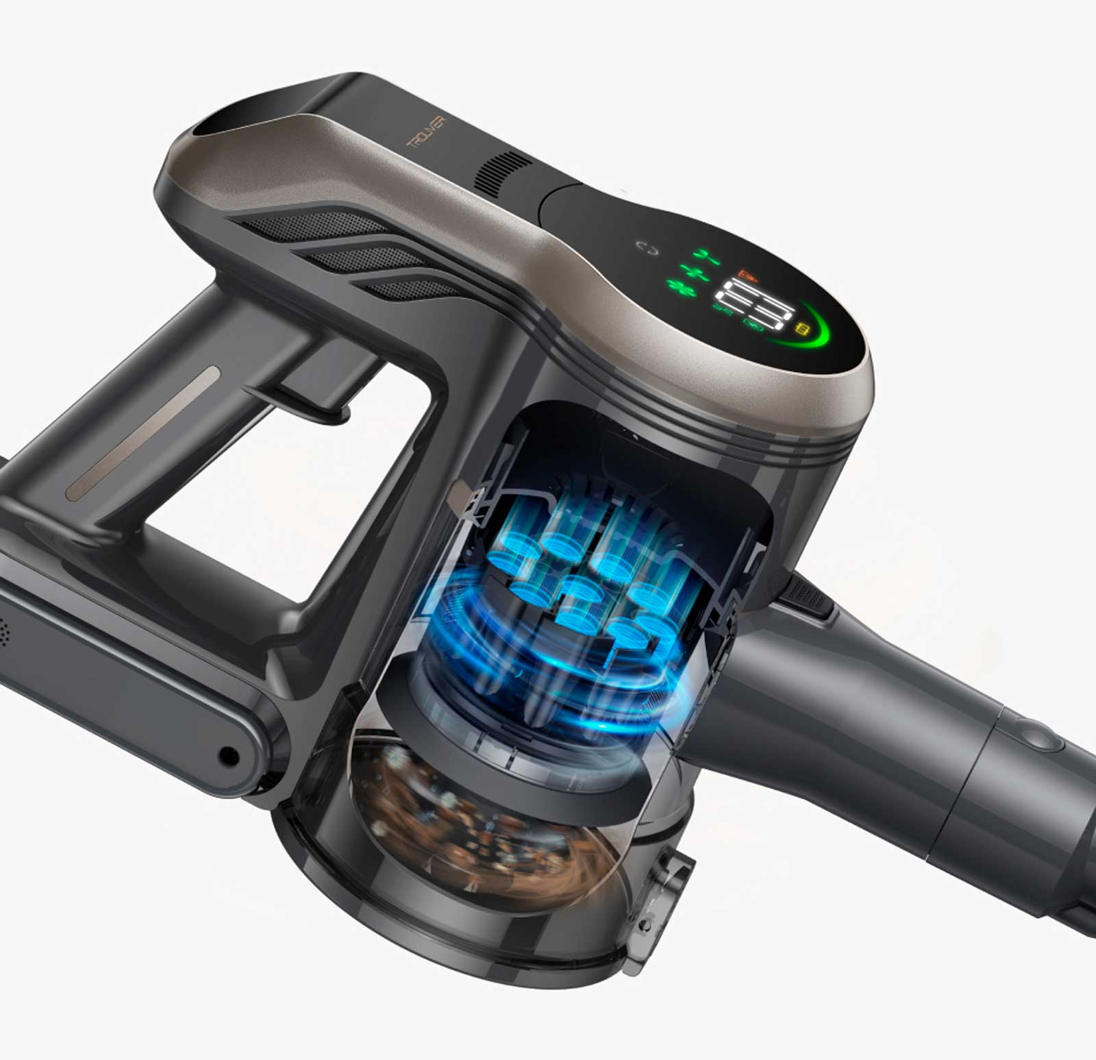 Благодаря бесщеточному двигателю мощностью 460 Вт пылесос TROUVER J40 может обеспечивать мощность всасывания 150 аэроватт и давление при всасывании 25 кПа.