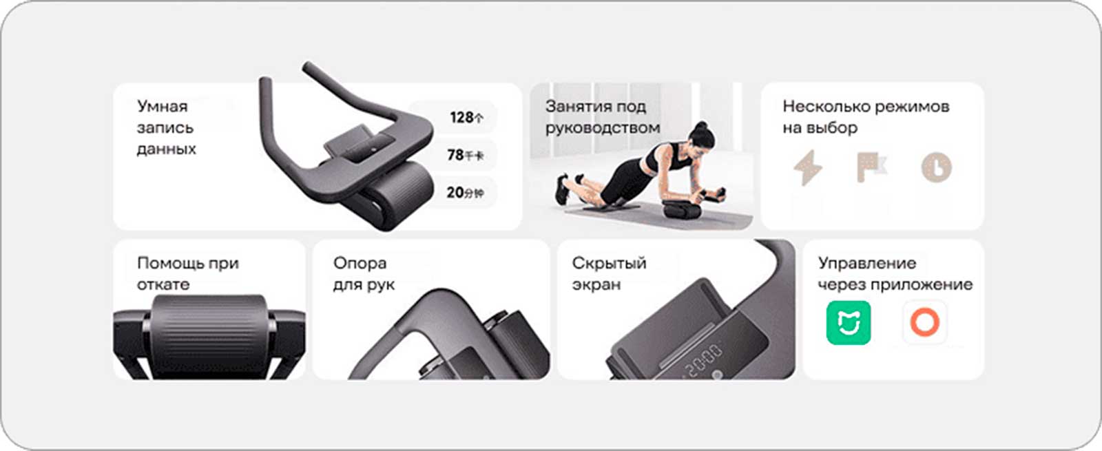 Понимая, что у каждого человека свои цели в фитнесе, Mijia Smart Abdominal Wheel предлагает высокую степень персонализации. С помощью сопутствующего приложения вы можете настраивать режимы тренировок и регулировать интенсивность