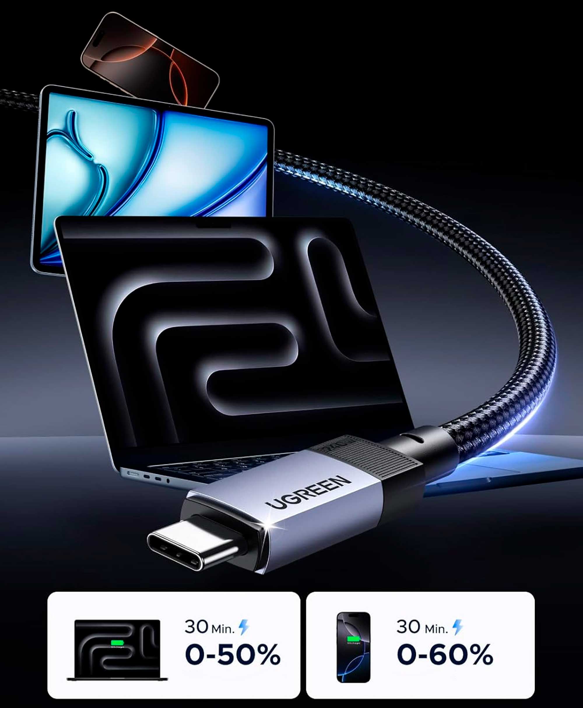Данный кабель USB-C — USB-C поддерживает сверхбыструю зарядку мощностью до 240 Вт (макс. 48V/5A) для ваших ноутбуков, планшетов и смартфонов. Он также совместим со стандартами Power Delivery на 180W, 140W, 100W, 60W, 45W, 30W и 18W.