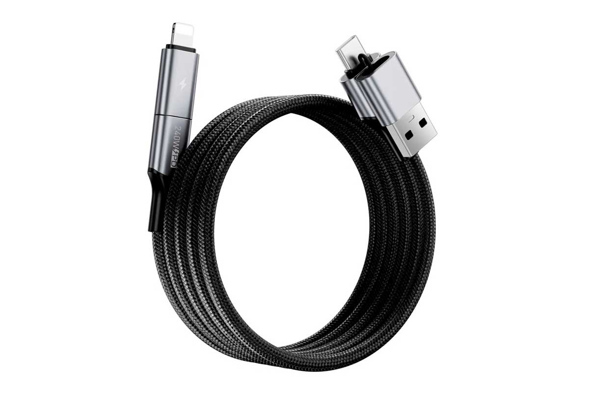 - Конструкция разъёма 3-в-1 — вход USB-A + USB-C, выход замены Type-C и Lightning → один кабель, который «взвешивает» всю экосистему.
