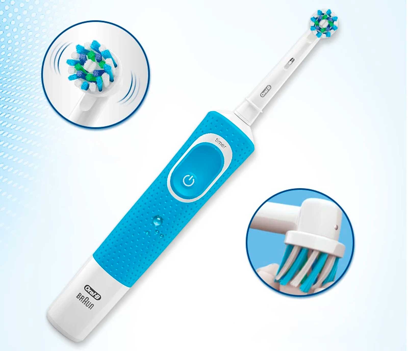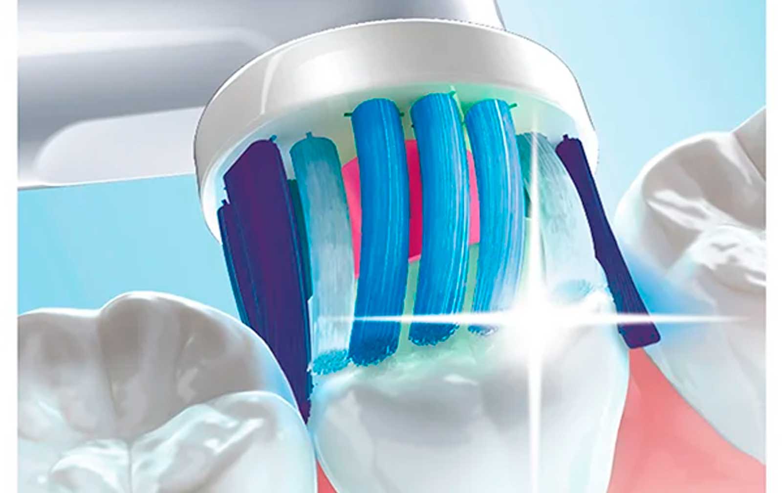 В электрической зубной щетке Oral-B Vitality используется технология двумерного очищения — вращательные и колебательные движения более эффективно удаляют налет по сравнению с обычной зубной щеткой.