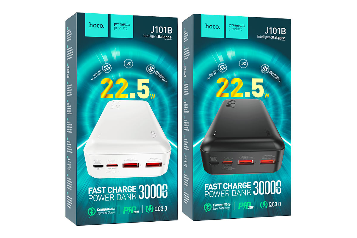 J101B Astute, портативный аккумулятор, 30000mAh, один Type-C и один Micro-USB входы, один Type-C и два USB-A выхода, поддержка протоколов быстрой зарядки