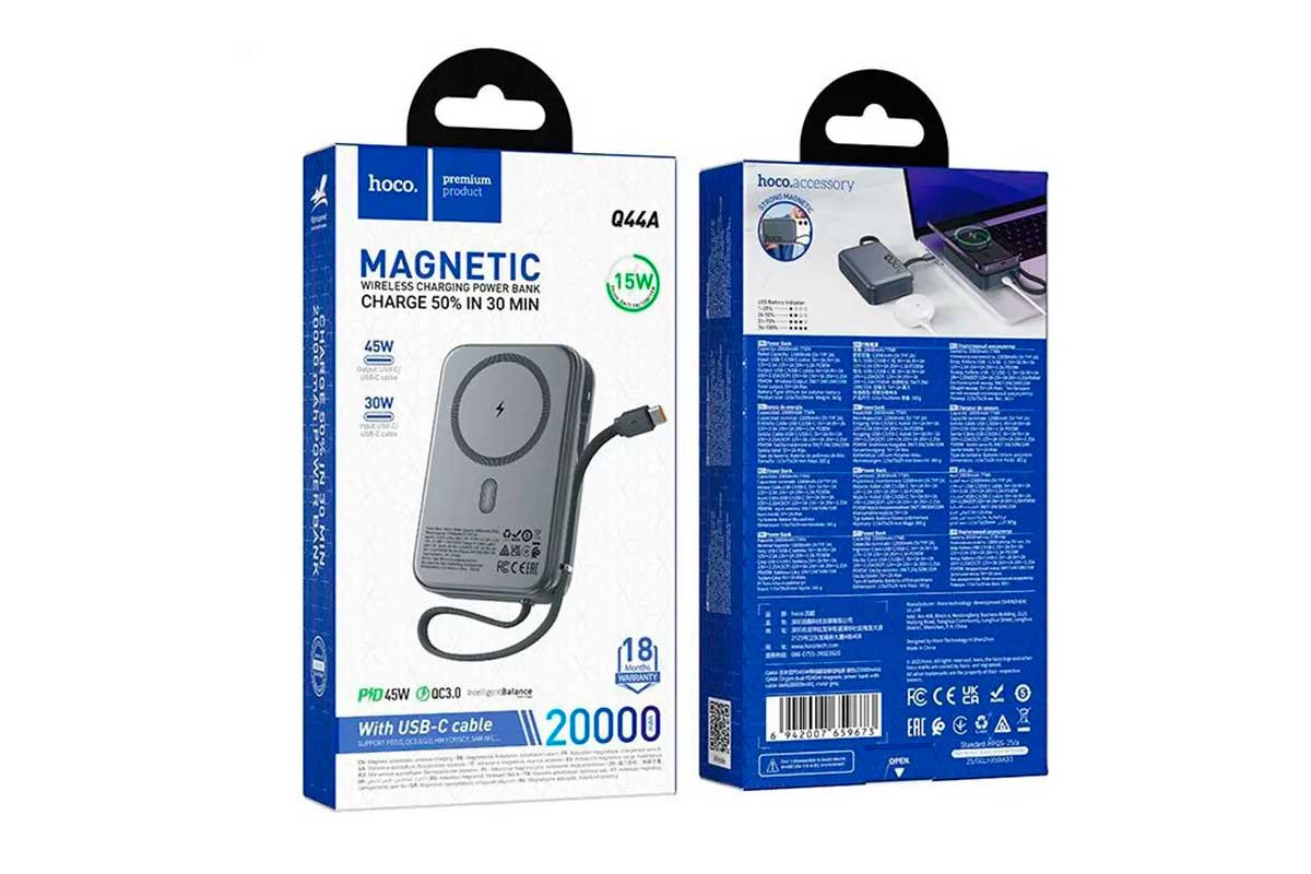 Hoco Q44A 45W - универсальная совместимость. Подходит для зарядки смартфонов, планшетов, ноутбуков, наушников, смарт часов и других гаджетов. Отличный выбор для путешествий, командировок и активной жизни.