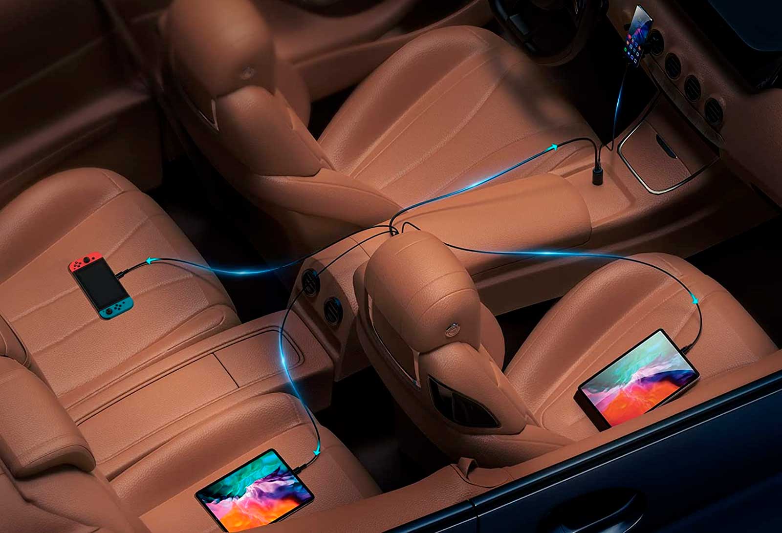 поездки? Подключите их планшеты к источнику питания и включите их любимый мультфильм. Вы можете одновременно заряжать свой телефон и автомобильную камеру!