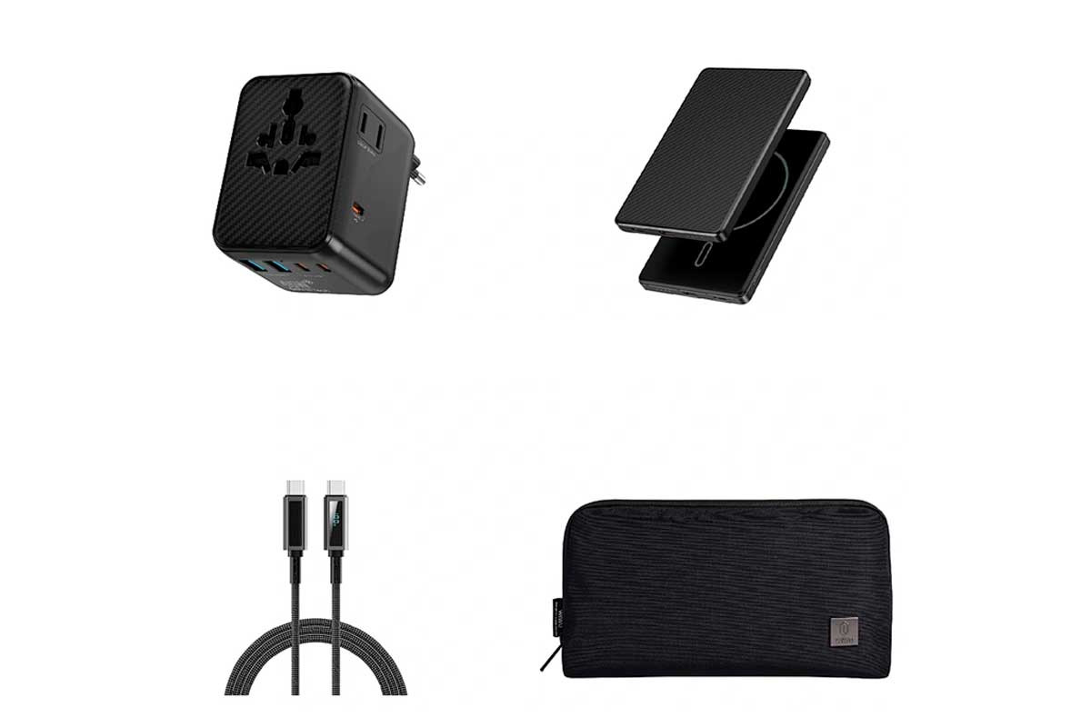 - Дорожное зарядное устройство Global 45W: Поворотная вилка, работает по всему миру, компактный.