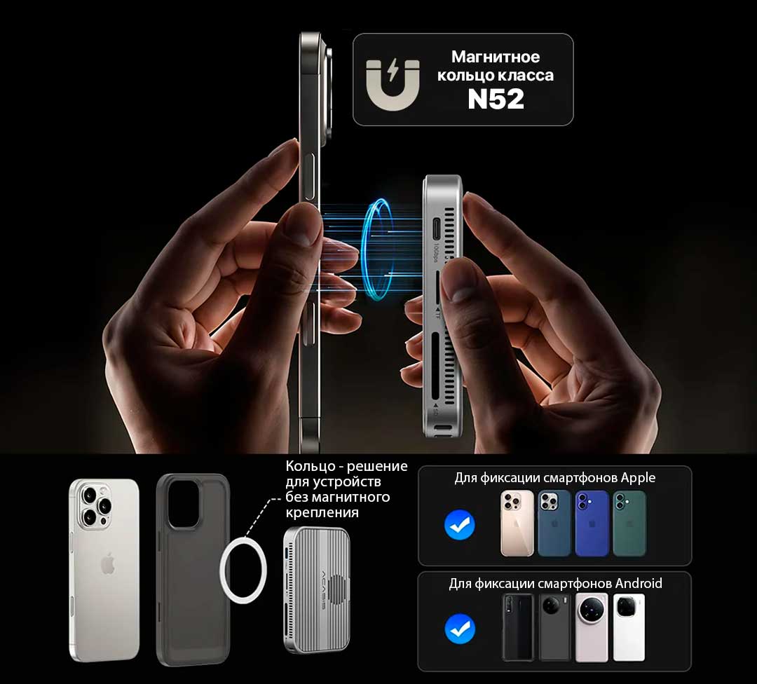 Продукт оснащён высокопрочным магнитным кольцом класса N52, которое обеспечивает исключительную силу притяжения