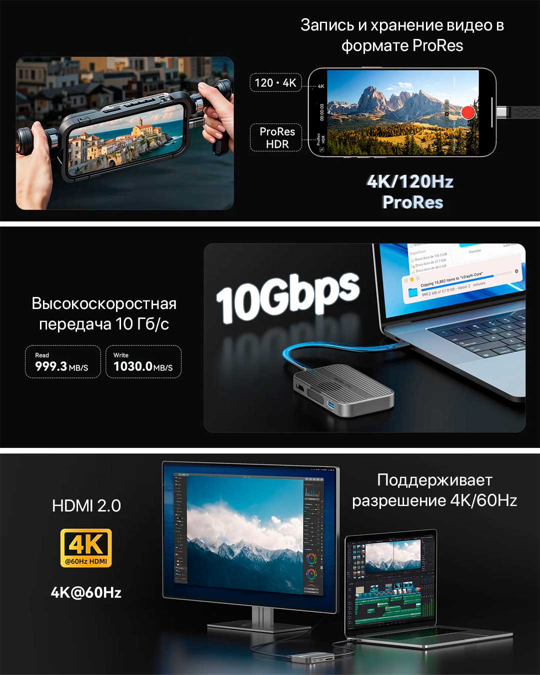 Поддерживает одновременное чтение и запись на оба накопителя. Он позволяет мгновенно синхронизировать фото- и видеоматериалы и работает по протоколу SD 3.0, обеспечивая скорость чтения до 80 МБ/с. Устройство станет удобным решением