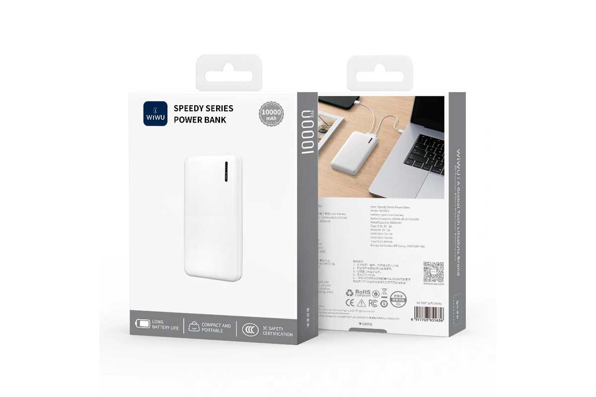 WiWU Wi-P067 — это компактный и эффективный портативный аккумулятор с ёмкостью батареи 10 000 мАч и номинальной ёмкостью 5 500 мАч, что делает его идеальным для повседневных задач по зарядке. Он оснащен двумя выходами USB-A, двумя портами для входящей зарядки и цифровым дисплеем для отображения уровня заряда в реальном времени. Благодаря многоуровневой защите он обеспечивает безопасность и удобство использования в ультратонком и портативном дизайне.