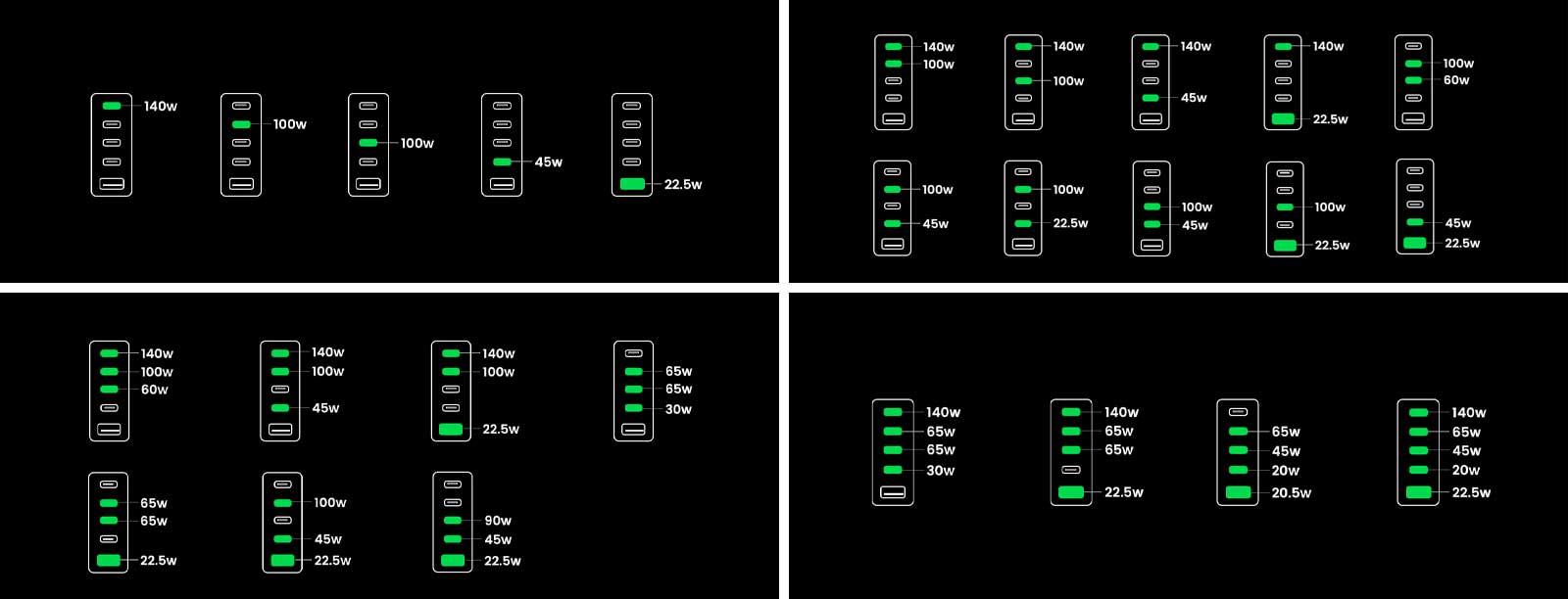Оснащенный портами USB-C и портом USB-A, UGREEN Nexode позволяет одновременно заряжать несколько устройств, устраняя необходимость в отдельных зарядных устройствах. Порты USB-C поддерживают Power Delivery 3.1 и 3.0, а порт USB-A