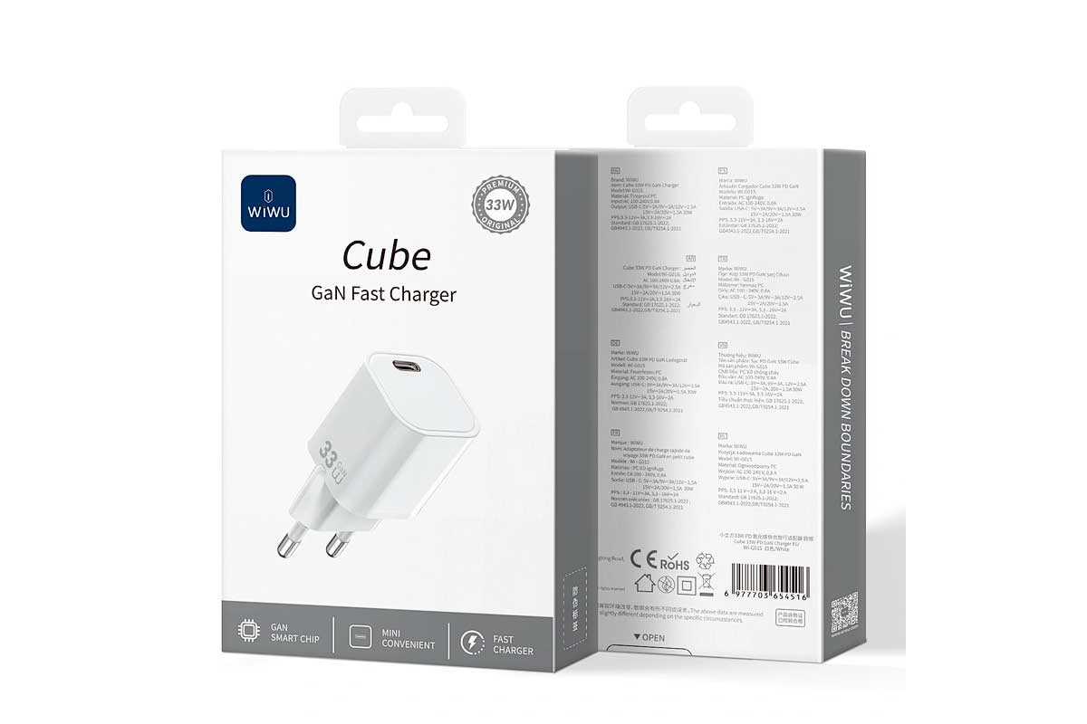 Упростите свою зарядку с мощным и портативным зарядным устройством WiWU Cube 33W GaN Charger. Это универсальное решение, которого вы так долго ждали. Созданное на базе передовой технологии Gallium Nitride (GaN), оно обеспечивает мощность 33 Вт Power Delivery при невероятно компактных размерах. Оно идеально подходит для быстрой зарядки iPhone (в 3 раза быстрее стандартного адаптера), зарядки iPad Pro или даже MacBook Air. Продвинутый GaN-микрочип позволил уменьшить размеры устройства и обеспечить высочайший уровень безопасности благодаря системе защиты MultiProtect. Миниатюрный и лёгкий корпус делает его удобным для ежедневного использования и путешествий. Доступно в нескольких вариантах вилок. Cube 33W — самое умное решение для питания ваших устройств каждый день.