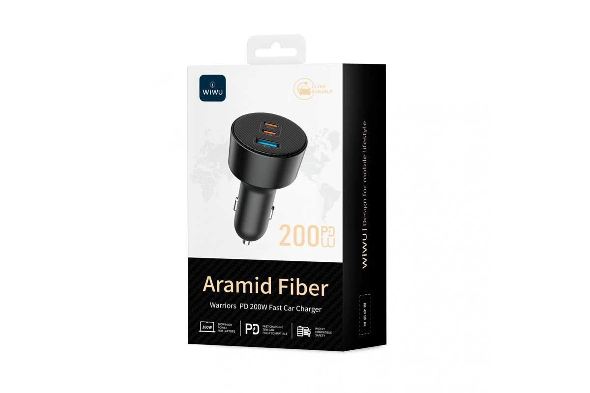 200W Car Charger (Dual USB-C + USB-A) — сверхмощное автомобильное зарядное устройство с общей выходной мощностью до 200 Вт. Два порта USB-C PD по 100 Вт и один USB-A до 60 Вт позволяют одновременно заряжать ноутбук, планшет и смартфон на максимальной скорости. Корпус из алюминия с кевларовой текстурой, увеличенные антискользящие контакты и многоуровневая защита обеспечивают стабильную работу даже на плохих дорогах. Интеллектуальная система управления равномерно распределяет мощность между портами и защищает устройства от перегрева и перегрузок.