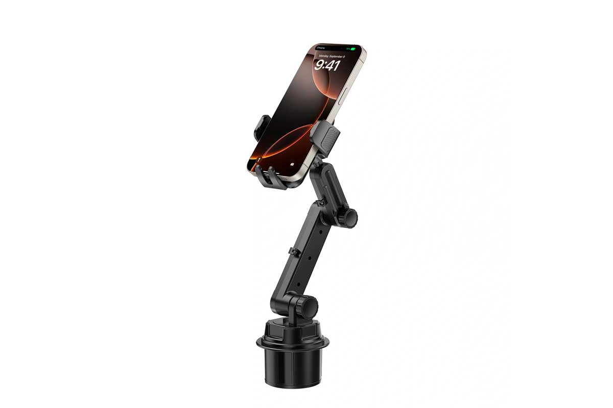 WiWU Gentleman Cup Holder Mount — удобный и универсальный автомобильный держатель для смартфона, который устанавливается прямо в подстаканник. Оснащён длинной механической штангой с несколькими шарнирами, позволяя точно настроить высоту, расстояние и угол обзора под себя. Шаровой механизм с вращением на 360° даёт возможность быстро переключаться между вертикальным и горизонтальным положением экрана — идеально для навигации и мультимедиа. В сложенном виде держатель занимает минимум места. Расширяемое основание плотно фиксируется в большинстве стандартных подстаканников, обеспечивая устойчивость без вибраций. Подходит для смартфонов с диагональю 4–7 дюймов и управляется одной рукой — для более безопасного и комфортного вождения.