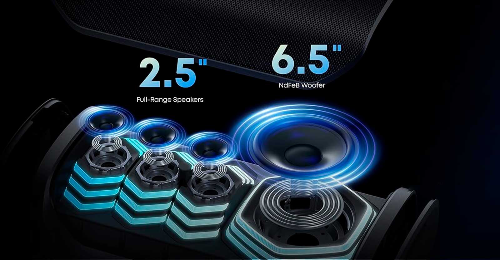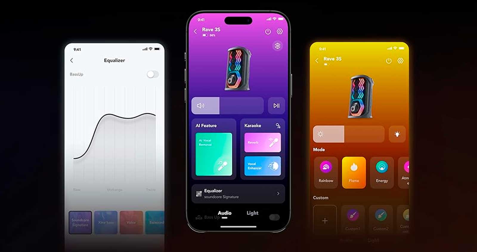 Rave 3S превосходит другие колонки с мощностью 200 Вт и грандиозным звуком на 108 дБ, заполняющим пространство. Почувствуй, как земля дрожит с BassUp™, обеспечивающим глубокий, заряжающий бас.