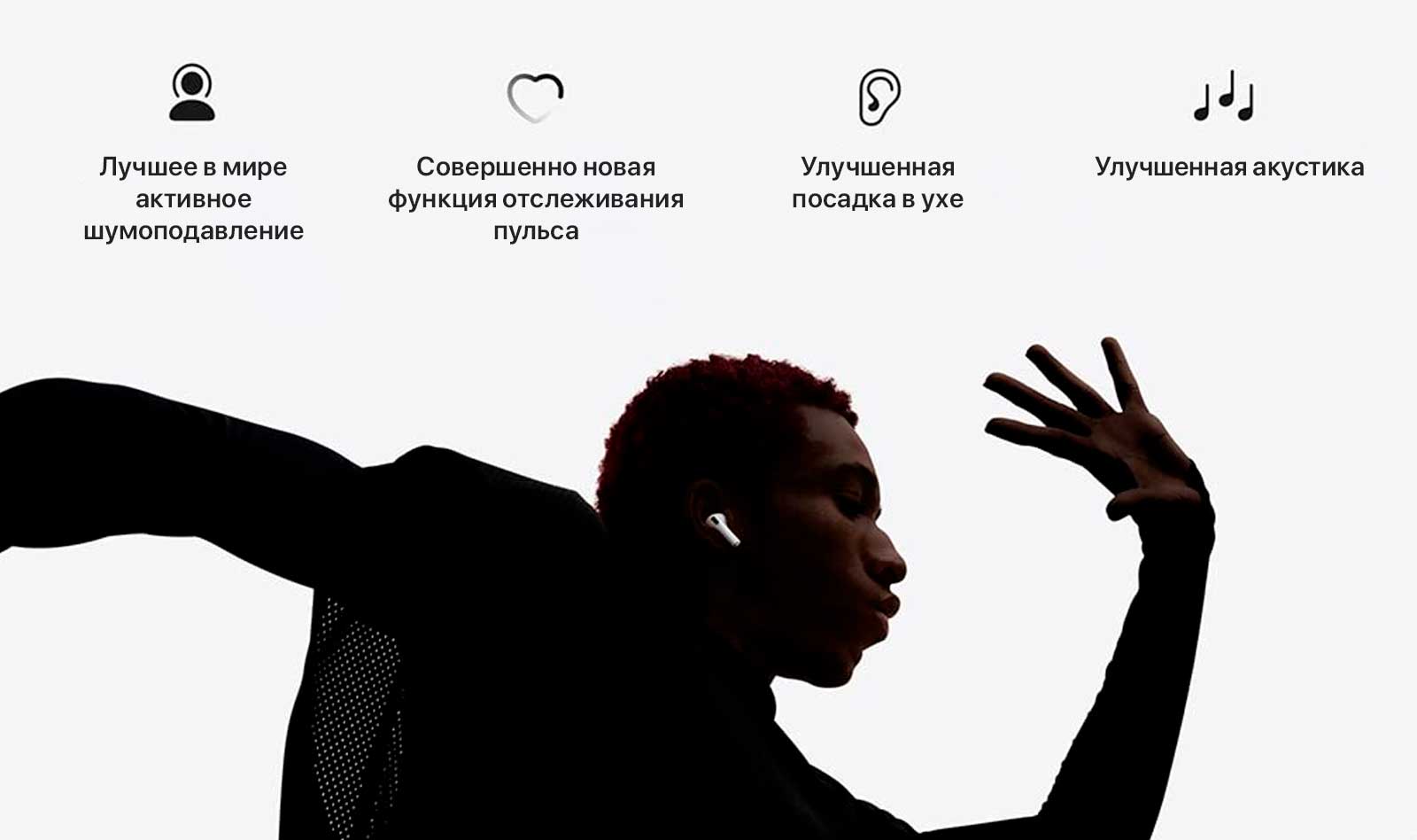 Активное шумоподавление. Исключительное качество звука. Более надежная посадка в ухе. До 8 часов с включенным активным шумоподавлением от одного заряда