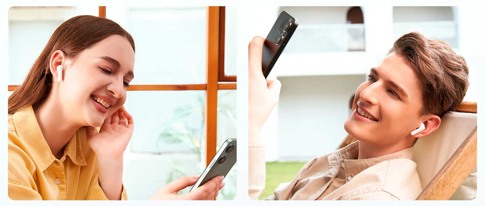 Технология шумоподавления окружающей среды с двумя микрофонами. AI-алгоритмы фильтруют окружающий шум, позволяя общаться без помех.