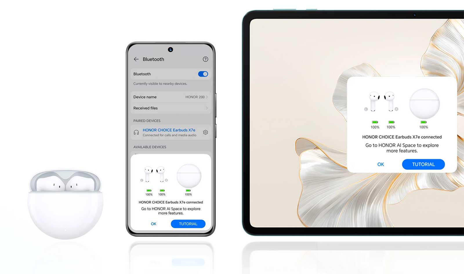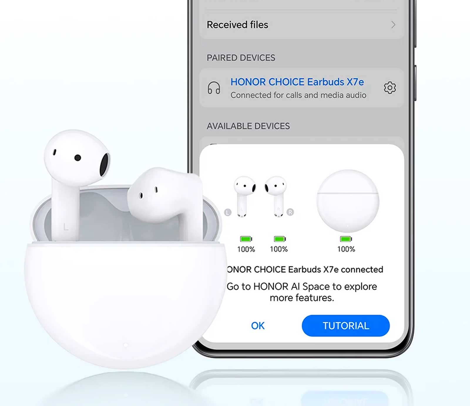 HONOR CHOICE Earbuds X7e автоматически подключаются к устройствам HONOR, на которых выполнен вход в один аккаунт.