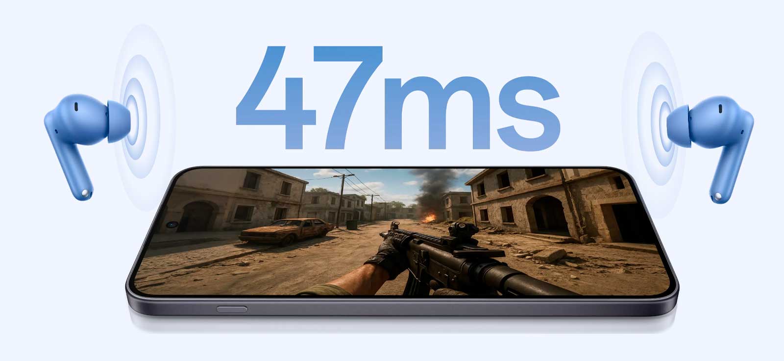 Каждый шаг. Каждый удар. Каждая победа. Реагируйте в режиме реального времени с высокой производительностью без задержек, сверхнизкой задержкой 47 мс в игровом режиме и беспроблемным подключением по Bluetooth® 5.4.