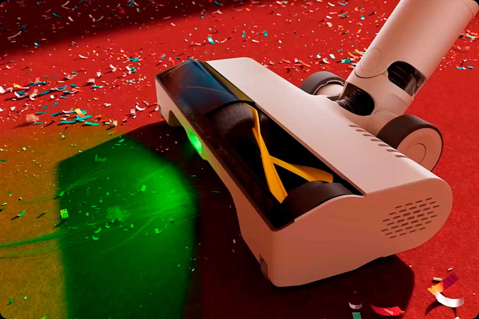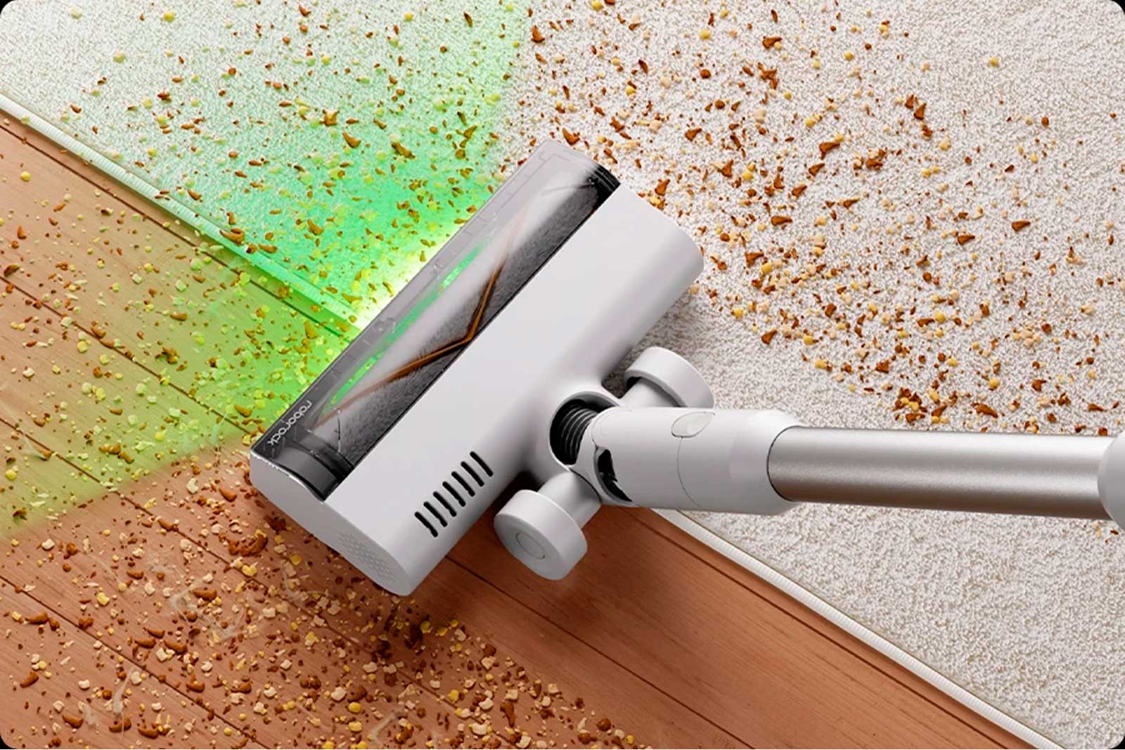 В передней части щетки Roborock H60 установлена светодиодная подсветка зелёного цвета с углом освещения 140°, которая помогает выявить даже самые незаметные загрязнения. С её помощью становятся видимыми мельчайшие частицы пыли,