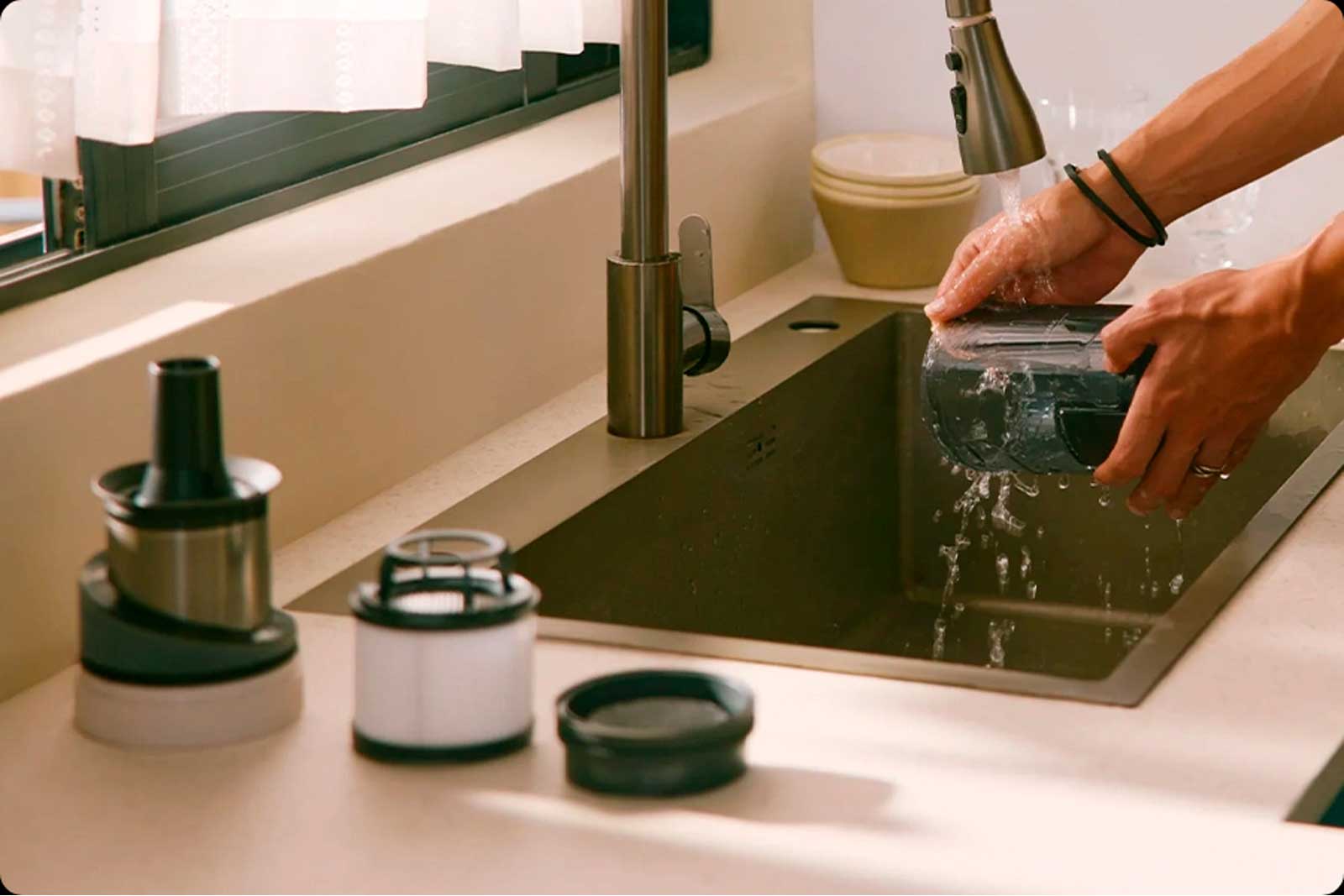 Все фильтры, включая HEPA, а также пылесборник пылесоса Roborock H60 выполнены из материалов, которые можно многократно мыть. После уборки контейнер опорожняется одним нажатием кнопки, затем легко промывается водой. Фильтры также