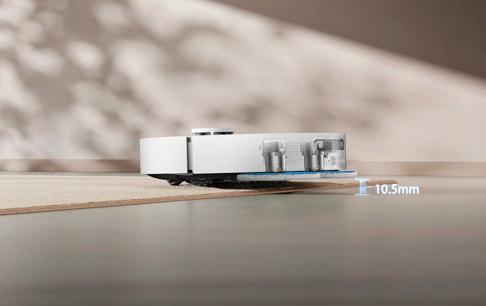 Швабры поднимаются на высоту до 10,5 мм при работе на ковровых покрытиях с коротким ворсом, обеспечивая их защиту от намокания и повышая эффективность выполнения различных задач уборки на твердых напольных покрытиях и коврах