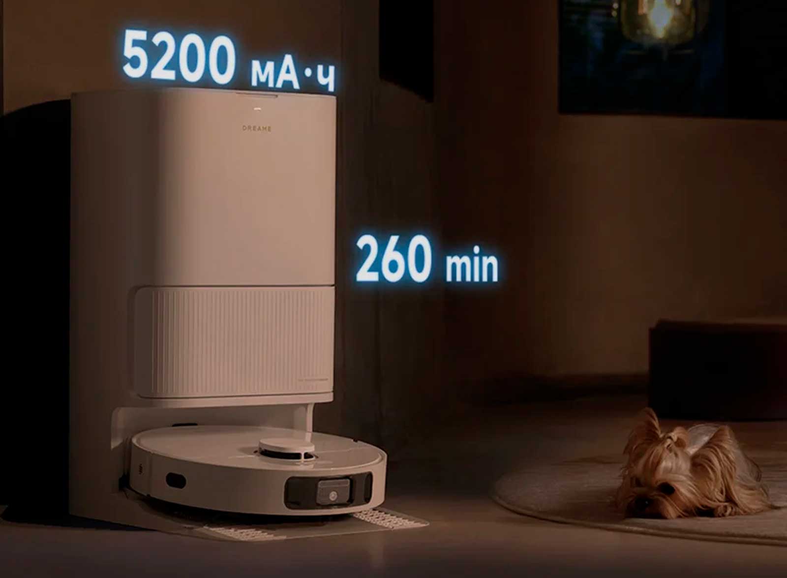 Благодаря аккумулятору большой емкости на 5200 мА·ч пылесос позволяет выполнять уборку без перерывов и добиваться стабильно высоких результатов