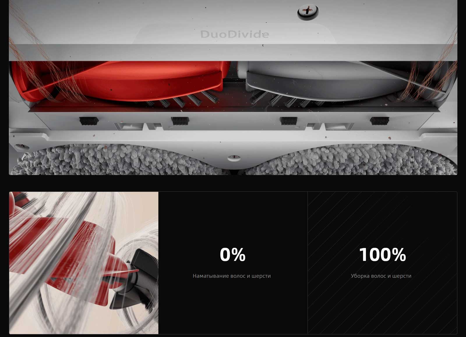 пыли. Она предотвращает спутывание и засорение, гарантируя безупречную чистоту полов без волос.