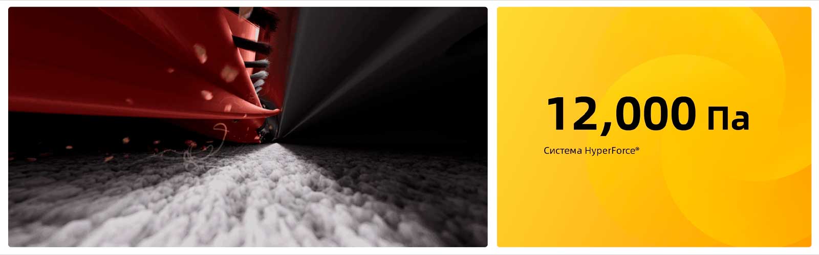 Тщательная уборка без усилий. Испытайте этот настоящий пылесос, оборудованный системой HyperForce® с мощностью всасывания 12000 Па. Будь то твердые полы или ковры, он эффективно удаляет глубоко въевшуюся грязь и пыль, гарантируя