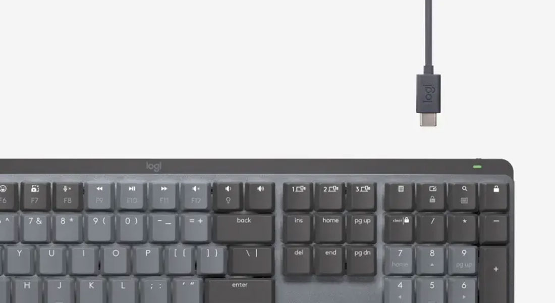 MX Mechanical остается включенным до 15 дней при полной зарядке или до 10 месяцев при выключенной подсветке. Заряжайте устройство во время работы с помощью прилагаемого зарядного кабеля USB-C.