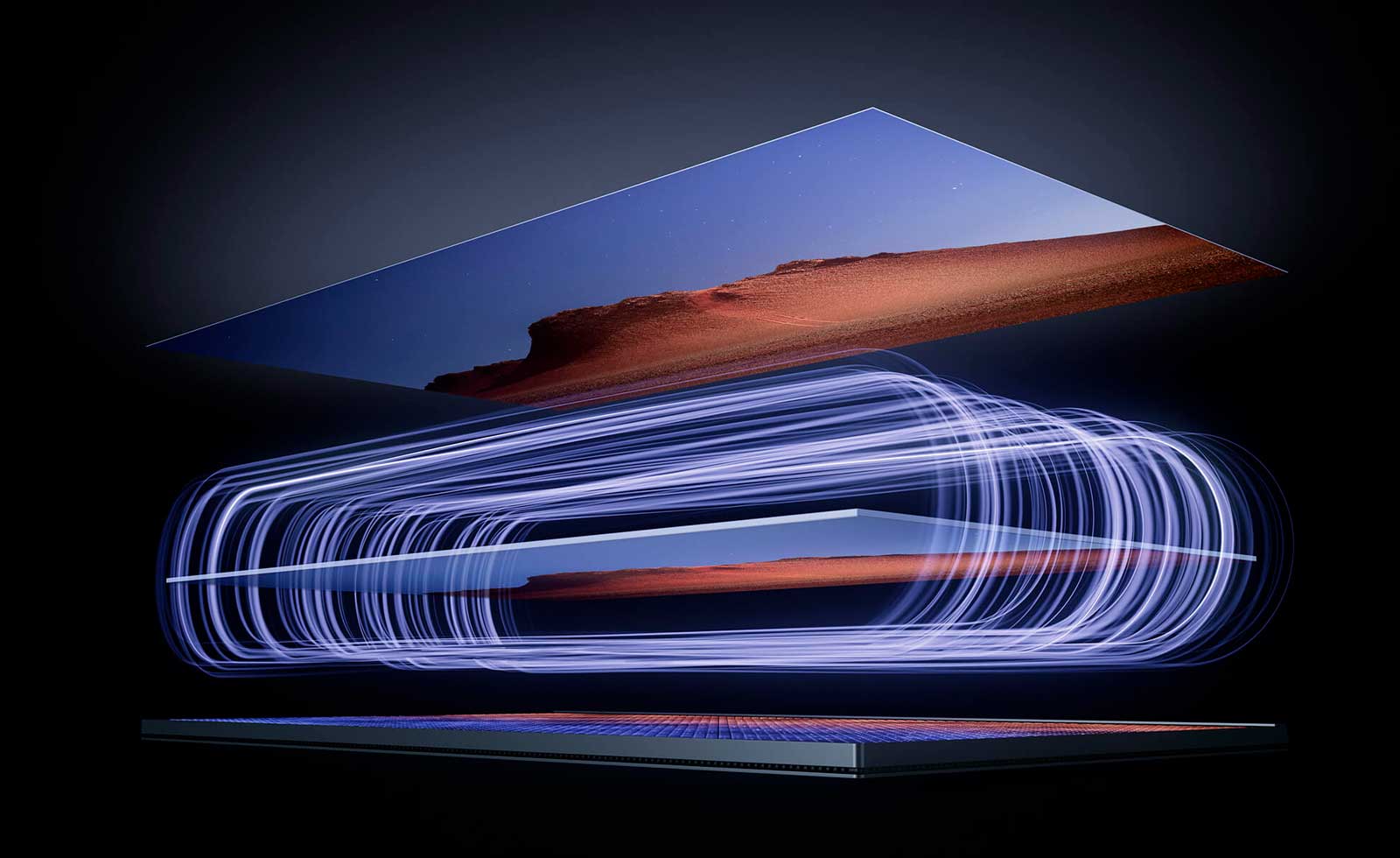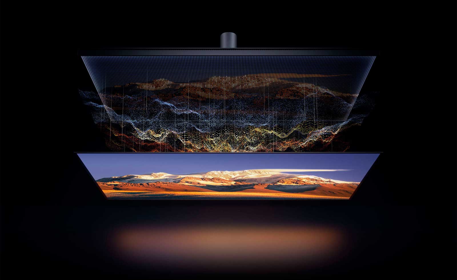 Дизайн с тремя микрокраями значительно расширяет радиус просмотра экрана и обладает полным погружения. Использование нескольких экранов делает широкое поле зрения более шокирующим.