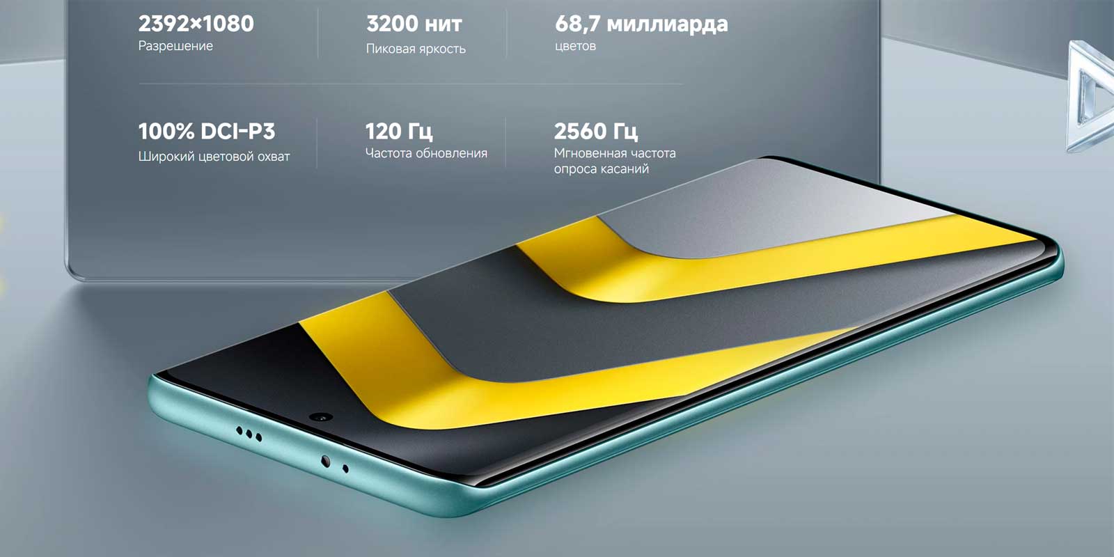 6.77-дюймовый экран Flow AMOLED. Передовые светящиеся материалы повышают пиковую яркость экрана до 3200 нит, обеспечивая чёткое изображение и яркие цвета даже при прямом солнечном свете. Высокая частота обновления 120 Гц и