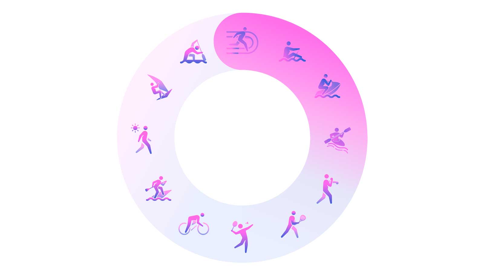 100+ режимов тренировок. От бадминтона до баскетбола — каждый найдет свой любимый спорт.