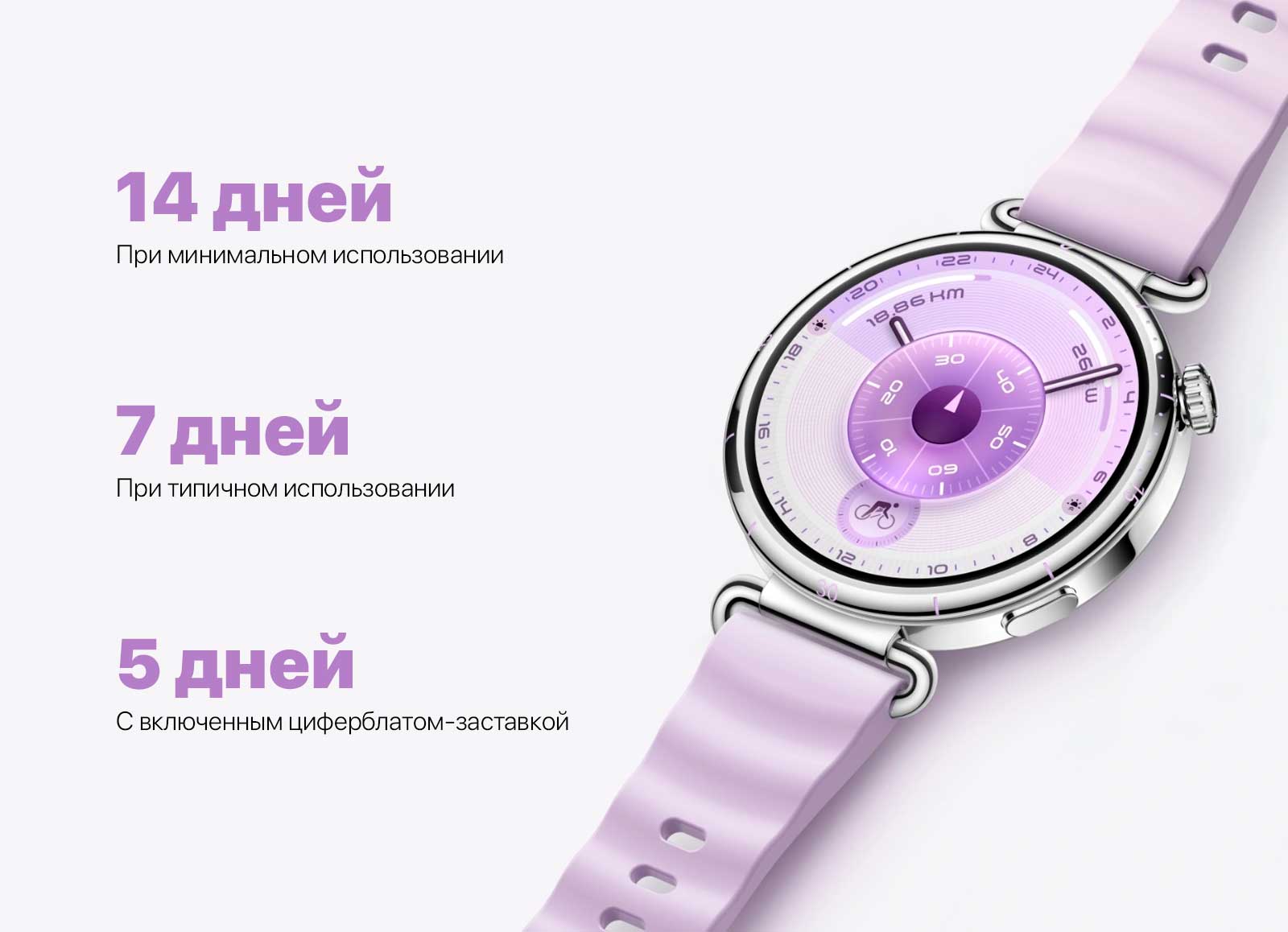 Впечатляющее время работы — до 14 дней на одном заряде. Благодаря инновационной батарее с высоким содержанием кремния плотность энергии увеличена на 37%. Устанавливайте новые рекорды, отбросив все заботы о зарядке устройства.