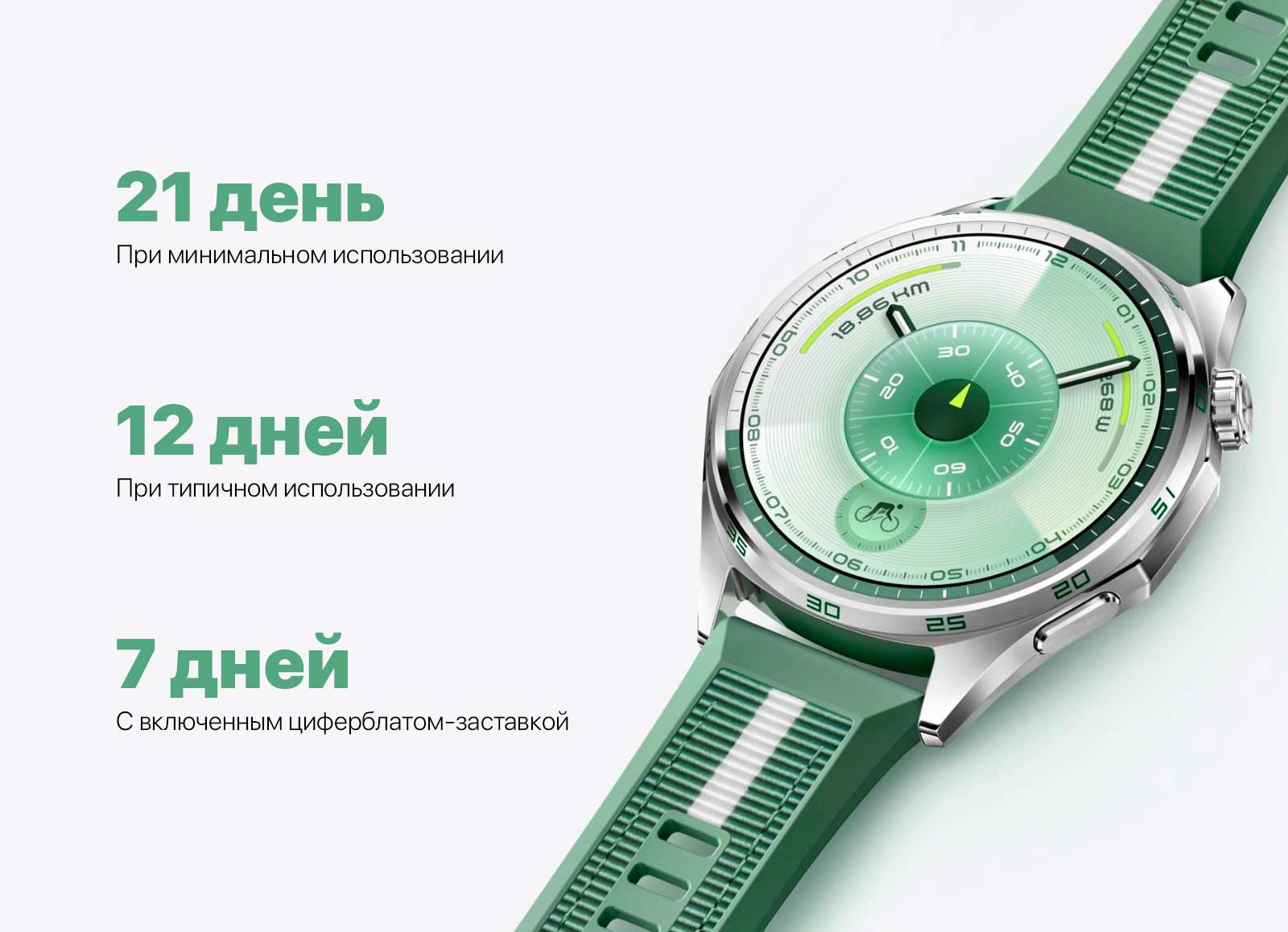 Впечатляющее время работы — до 21 дня на одном заряде. Благодаря инновационной батарее с высоким содержанием кремния плотность энергии увеличена на 37%. Устанавливайте новые рекорды, отбросив все заботы о зарядке устройства.
