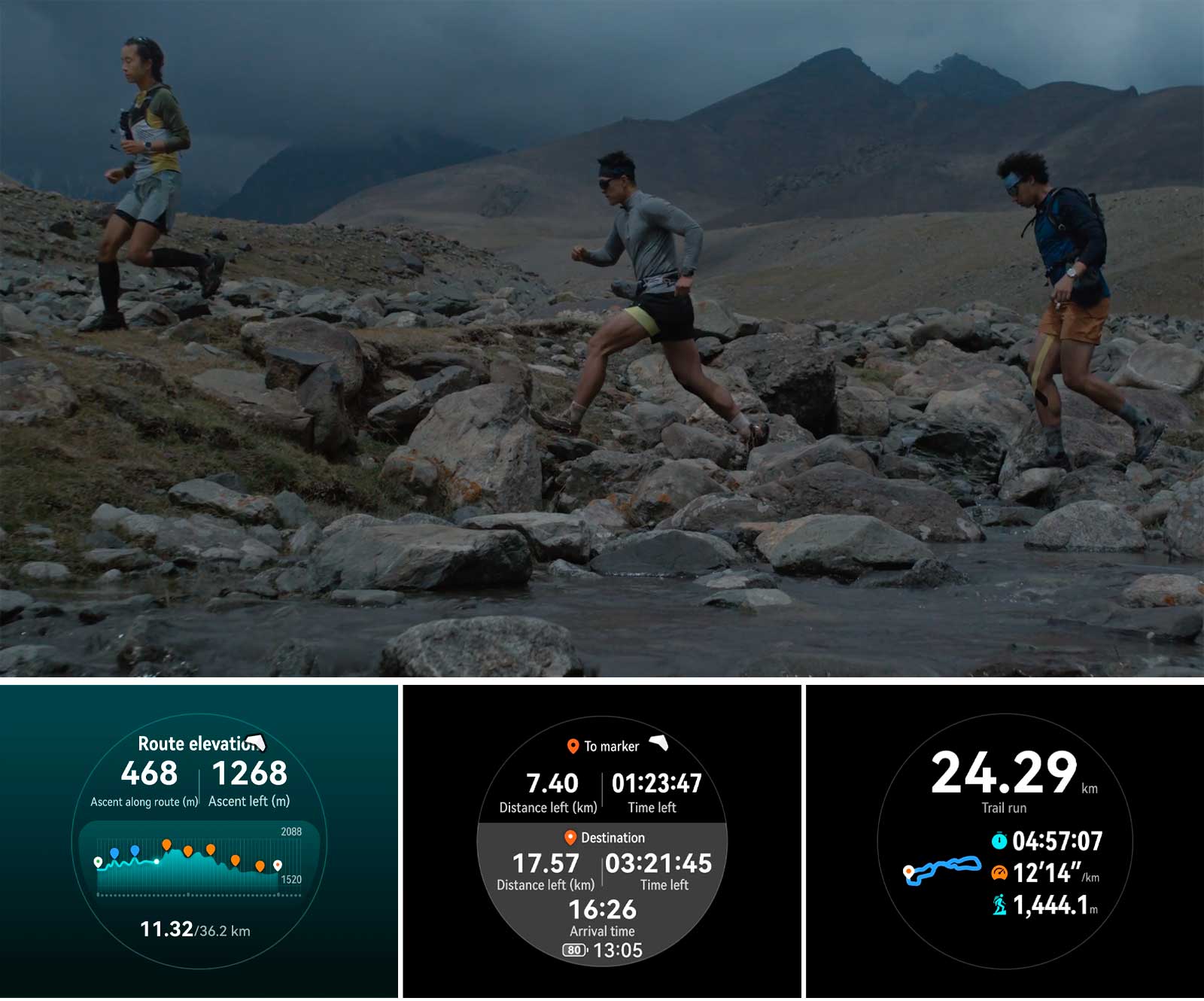 скорость, пульс, расчет уклона в режиме реального времени и коррекция темпа в зависимости от уклона, позволяет уверенно планировать свой дальнейший путь. Часы могут проработать до 40 часов в режиме тренировок на открытом воздухе на