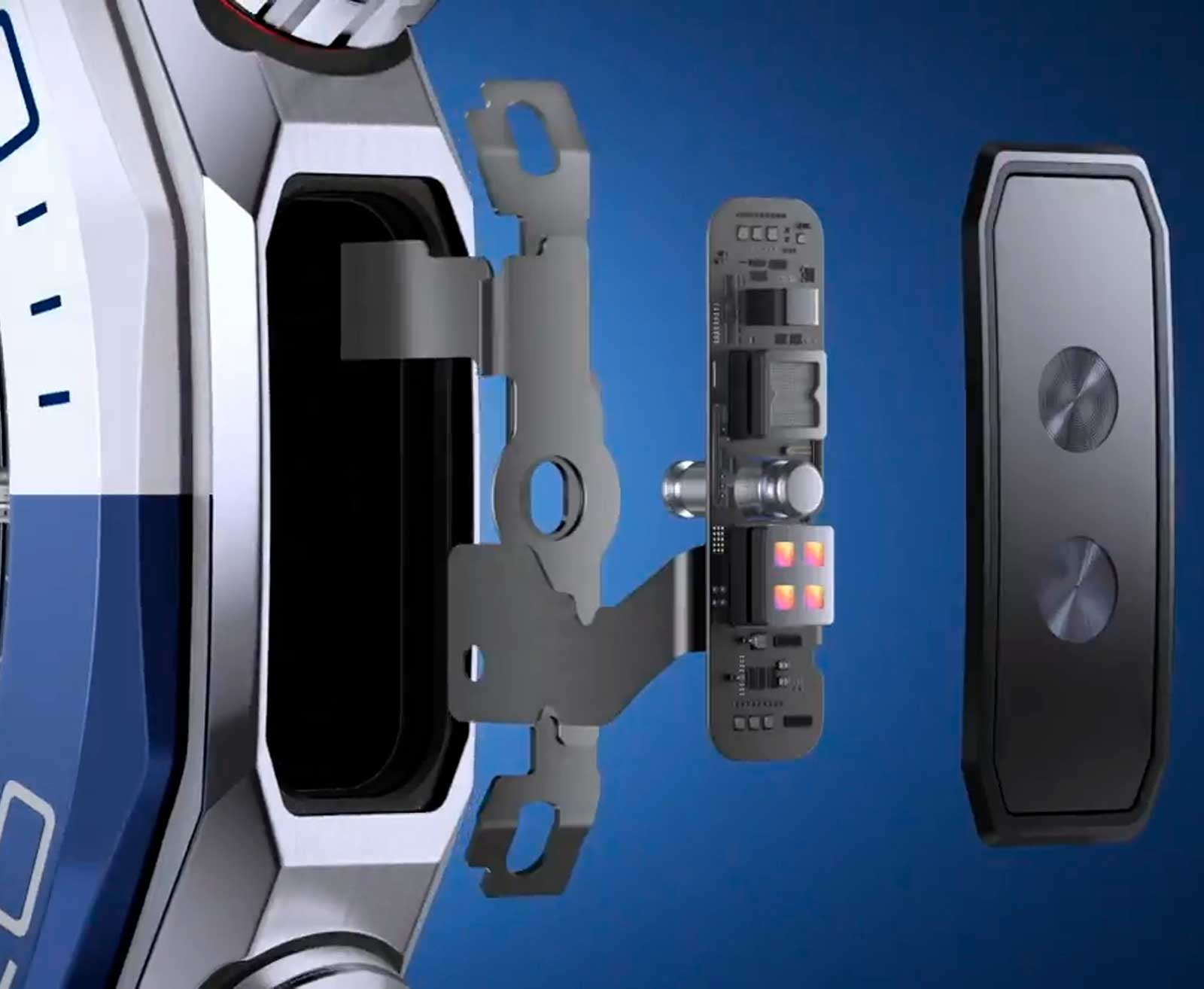 Высокая надежность. часы представлены в корпусе из жидкого металла на основе сплава циркония. На устройстве установлен керамический безель и сапфировое стекло, что обеспечивает высокий уровень прочности и устойчивости к