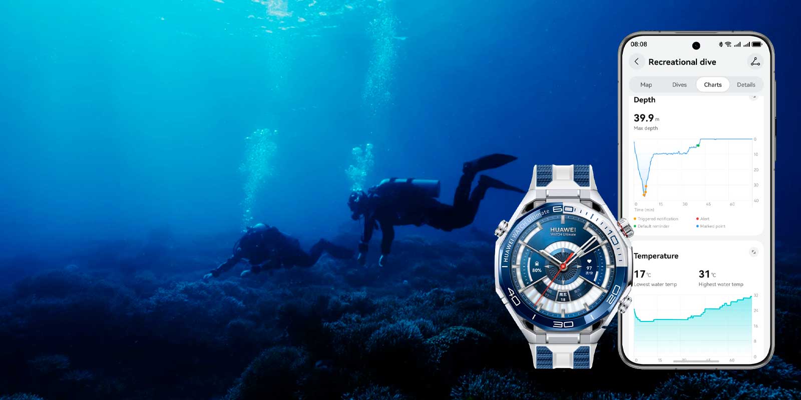 Погружайтесь на большую глубину под контролем. Первые в мире смарт-часы, которые поддерживают не только погружение на глубину до 150 метров, но и обеспечивают работу аудиофункций, когда вы находитесь на суше. Инновационная