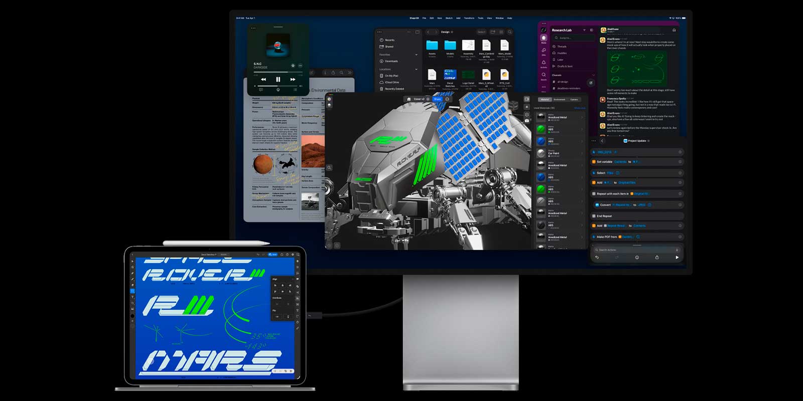iPadOS 26 представляет потрясающий новый дизайн с технологией Liquid Glass и революционными улучшениями, которые выводят производительность iPad Pro на новый уровень. Обновленная, интуитивно понятная оконная система обеспечивает