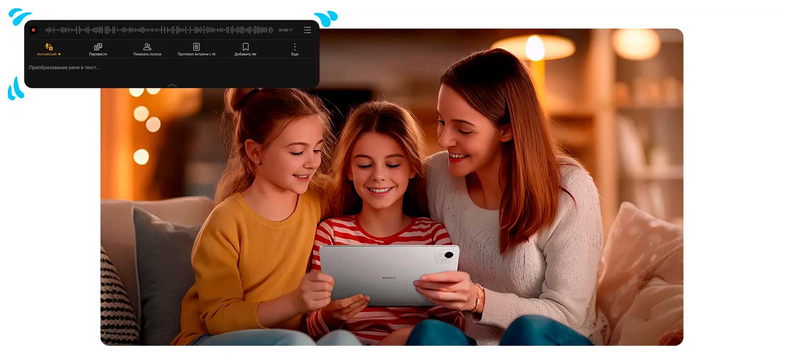 Экран с диагональю 11.5 дюйма, тонкими рамками и полезной площадью 86%, идеально подходит для просмотра видео, дистанционного обучения, работы с документами, а также чтения. Технологии защиты зрения обеспечивают комфортное