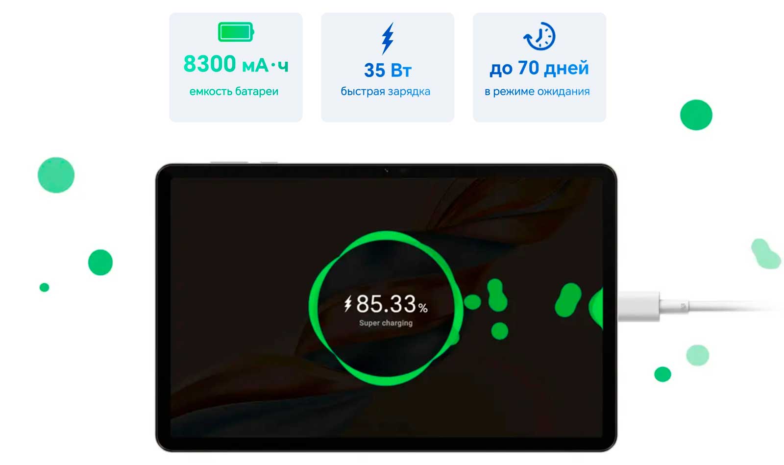 Яркий экран 2.5K с частотой 120 Гц | Автономность до 10 часов с батареей 8300 мА·ч | Тонкий металлический корпус 6.77 мм