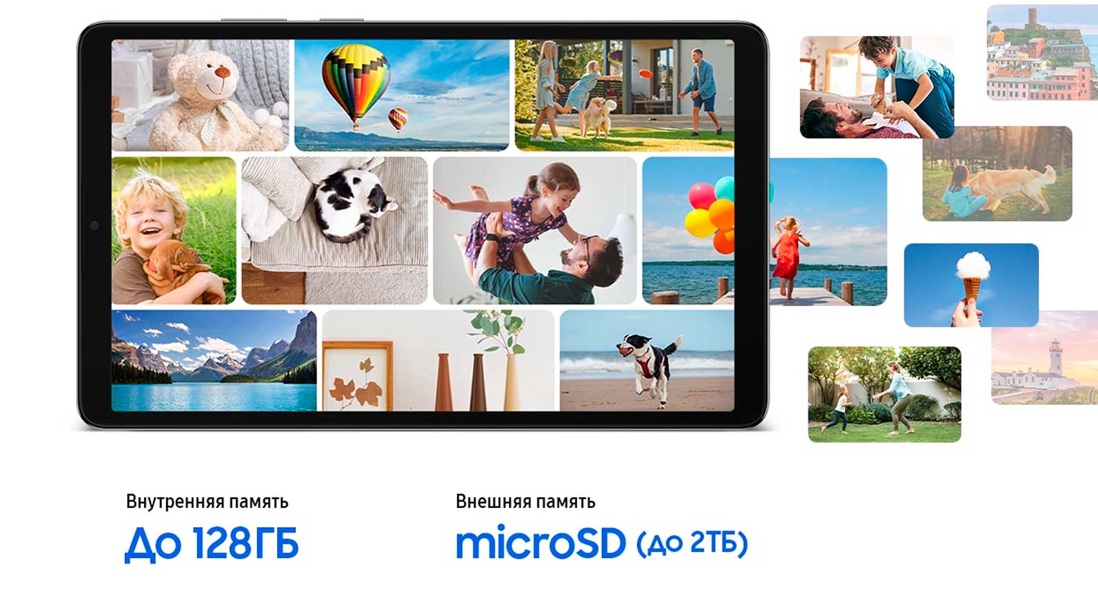 Galaxy Tab A11 оснащен большим объемом оперативной и встроенной памяти. Благодаря ОЗУ до 8 ГБ планшет легко поддерживает режим многозадачности, а встроенной памяти будет достаточно для хранения необходимых файлов и установки