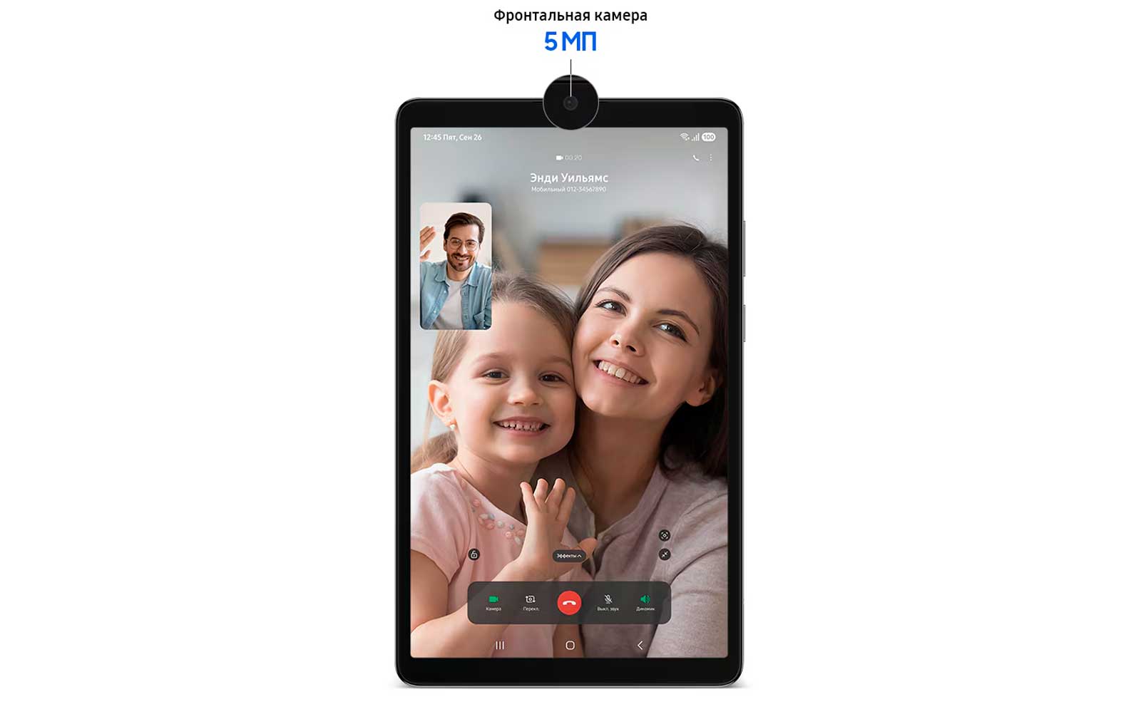Поддерживайте общение с близкими людьми. Galaxy Tab A11 оснащен фронтальной камерой 5 Мп для более четкой картинки во время видеозвонков. Общаетесь ли вы с семьей или работаете с командой, улучшенная четкость позволяет лучше видеть